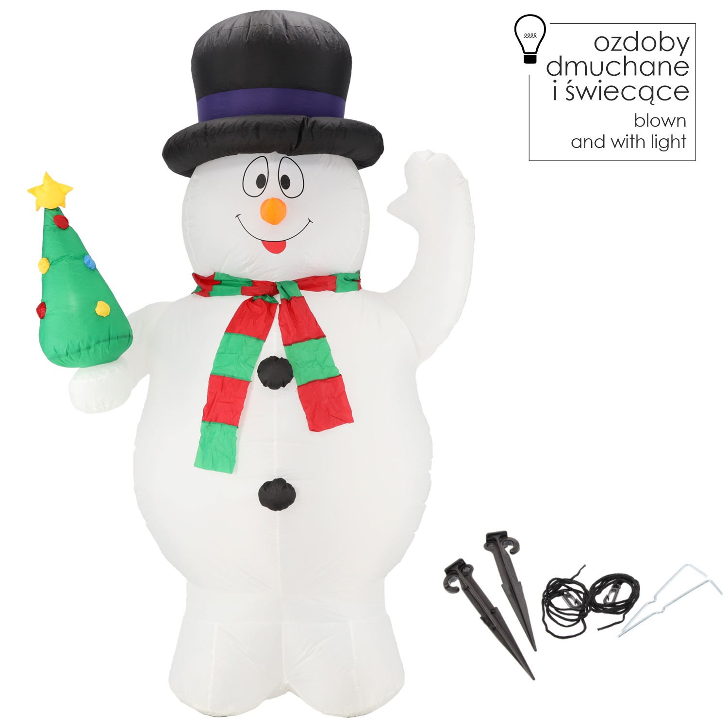 Внесіть у своє оточення святкову атмосферу, сповнену тепла і блиску! Цей чарівний надувний сніговик з LED-підсвіткою – чудова прикраса, яка приверне увагу всіх – і домочадців, і гостей. Завдяки висоті 240 см і ефектній LED-підсвітці він стане центральним елементом ваших зимових прикрас – у будинку, саду чи на робочому місці.