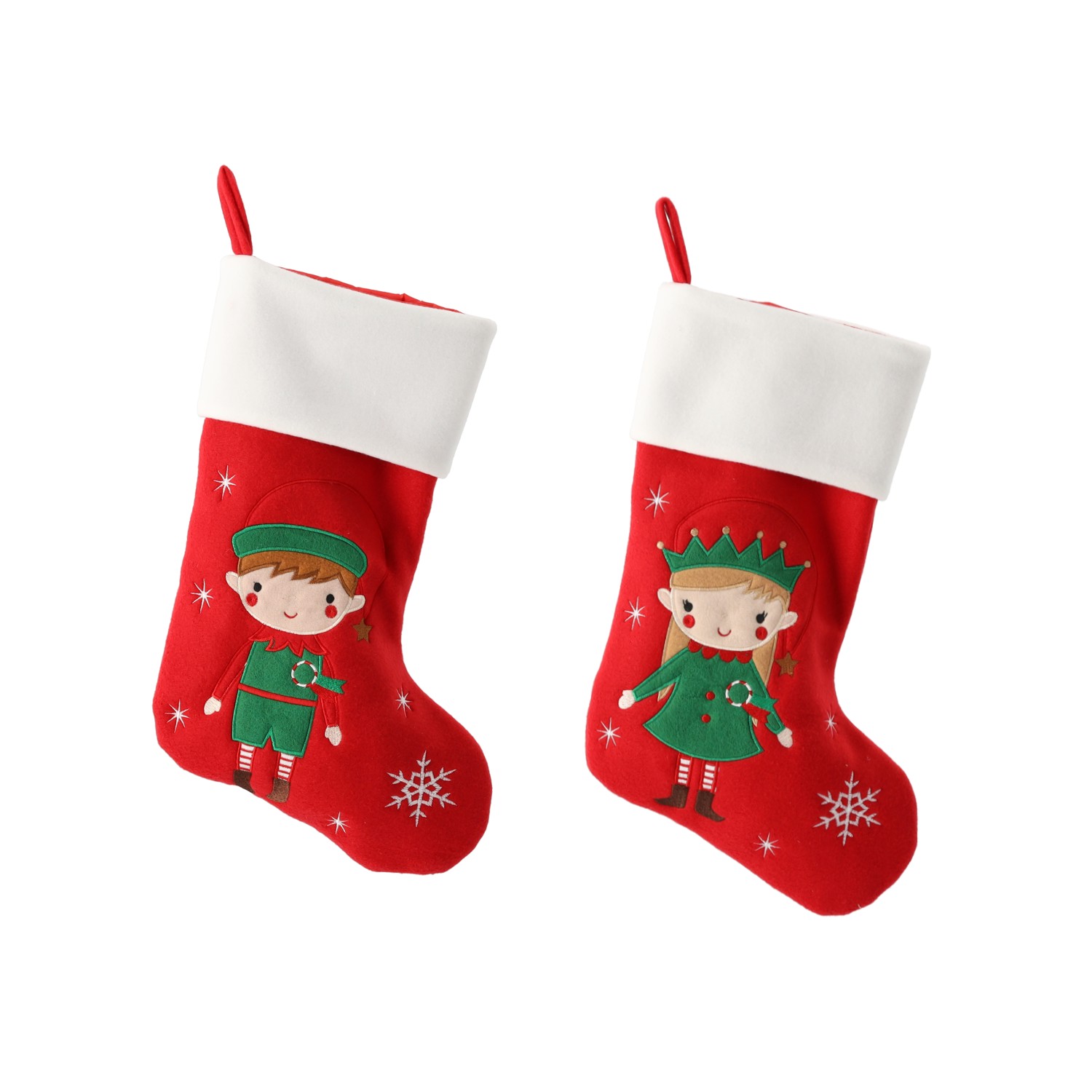 М'яка святкова шкарпетка з принтом ельфа, доступні два дизайни: хлопчик/дівчинкаКолір: червоний, верх білийРозміри: 46 см