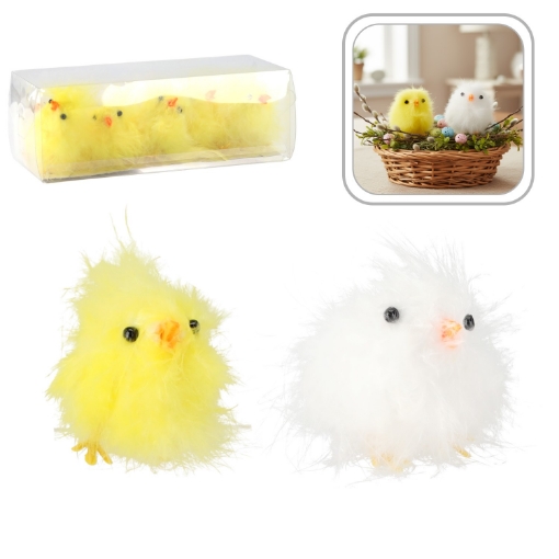 НАБІР 10 КУРЧАТ 18 x 8 x 6,5 СМ ПУХНАСТИХ ЖОВТО-БІЛИХ