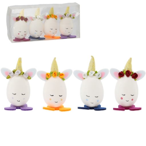 НАБІР З 4 ВЕЛИКОДНІХ ПРИКРАС - ЯЙЦЯ З ВУХАМИ І В КАПЕЛЮШКАХ 17,5 x 8 x 4 СМ