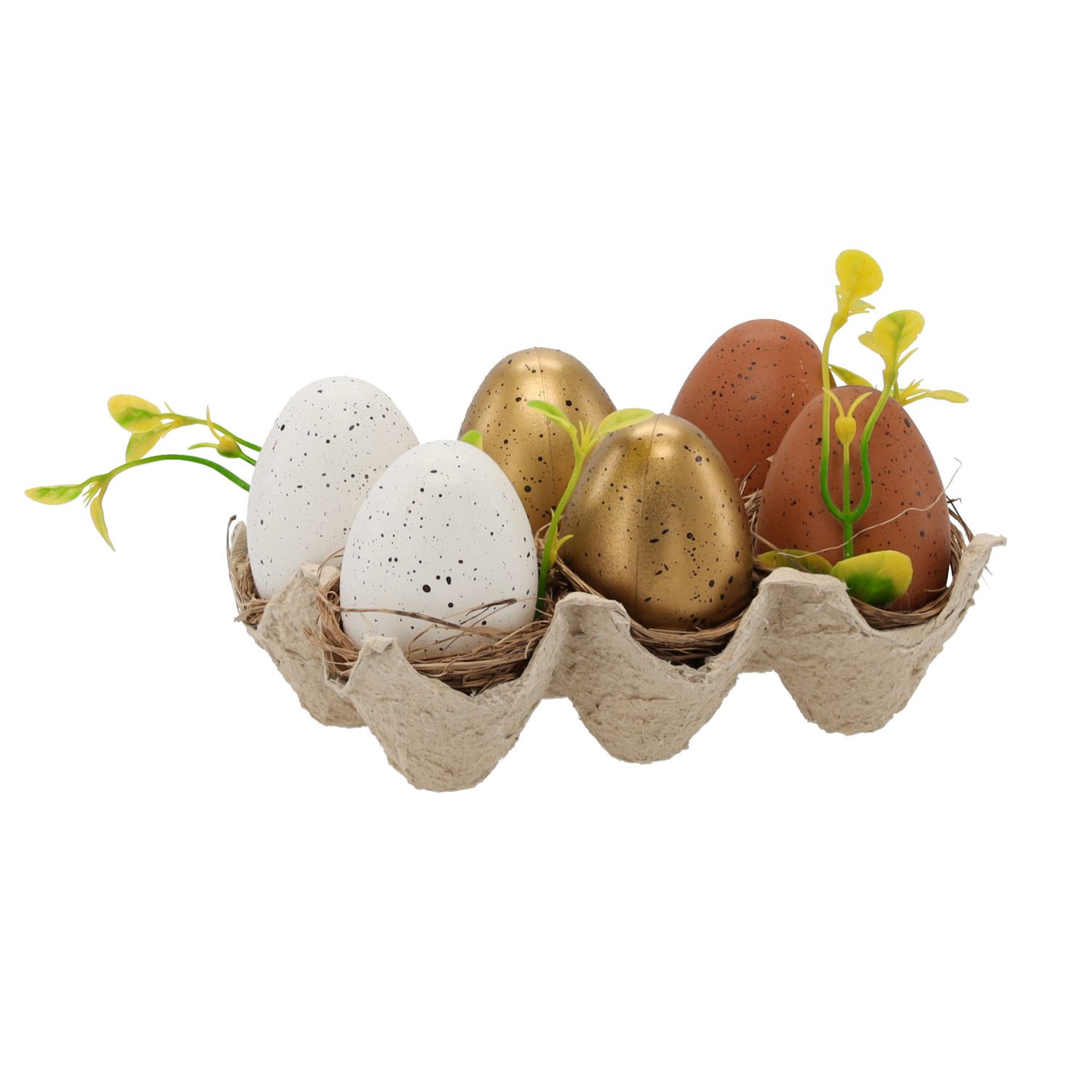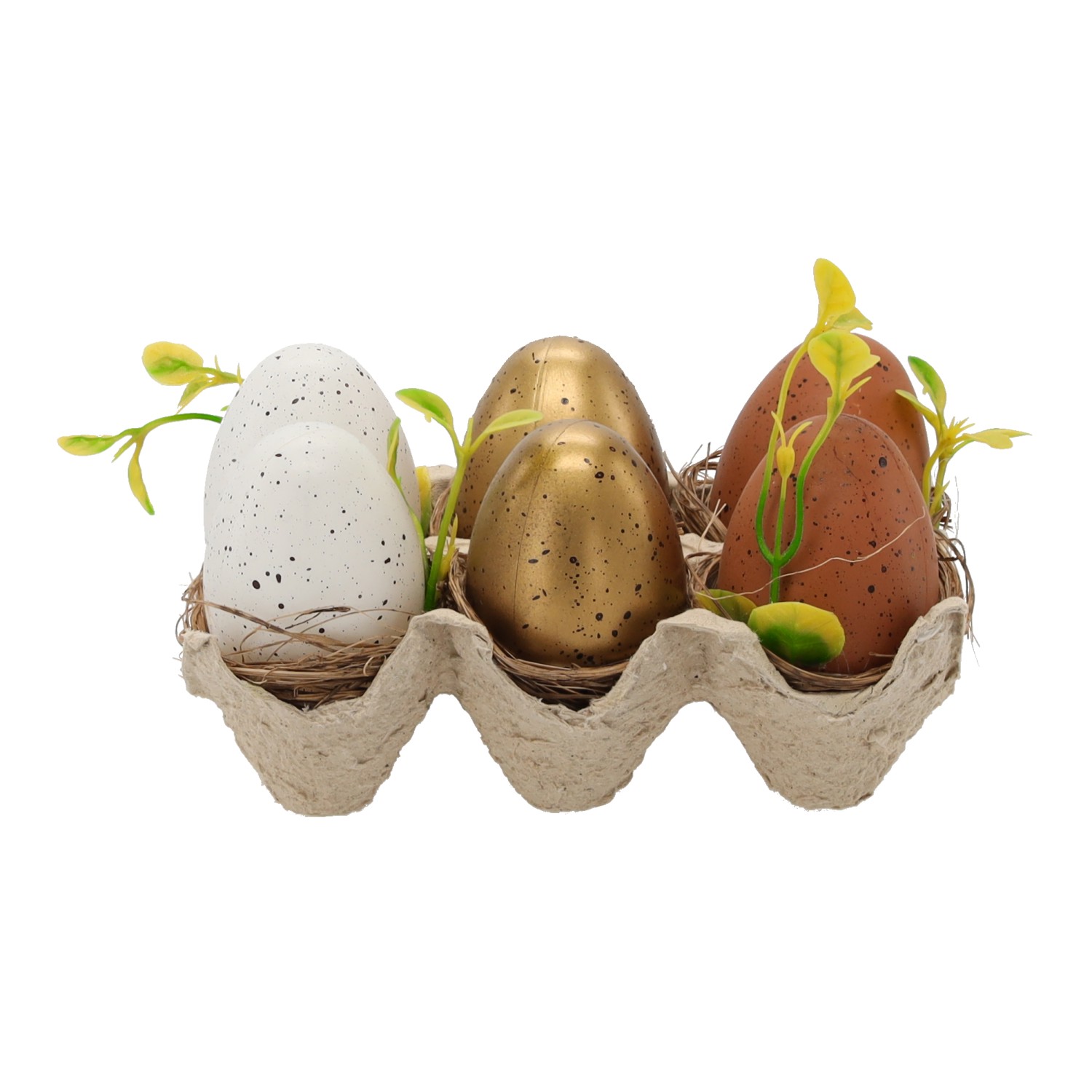 НАБІР 6 ЯЄЦЬ У ТРИМБАТІ 4 x 6 СМ БІЛО-КОРИЧНЕВИЙ-ЗОЛОТИСТИЙ