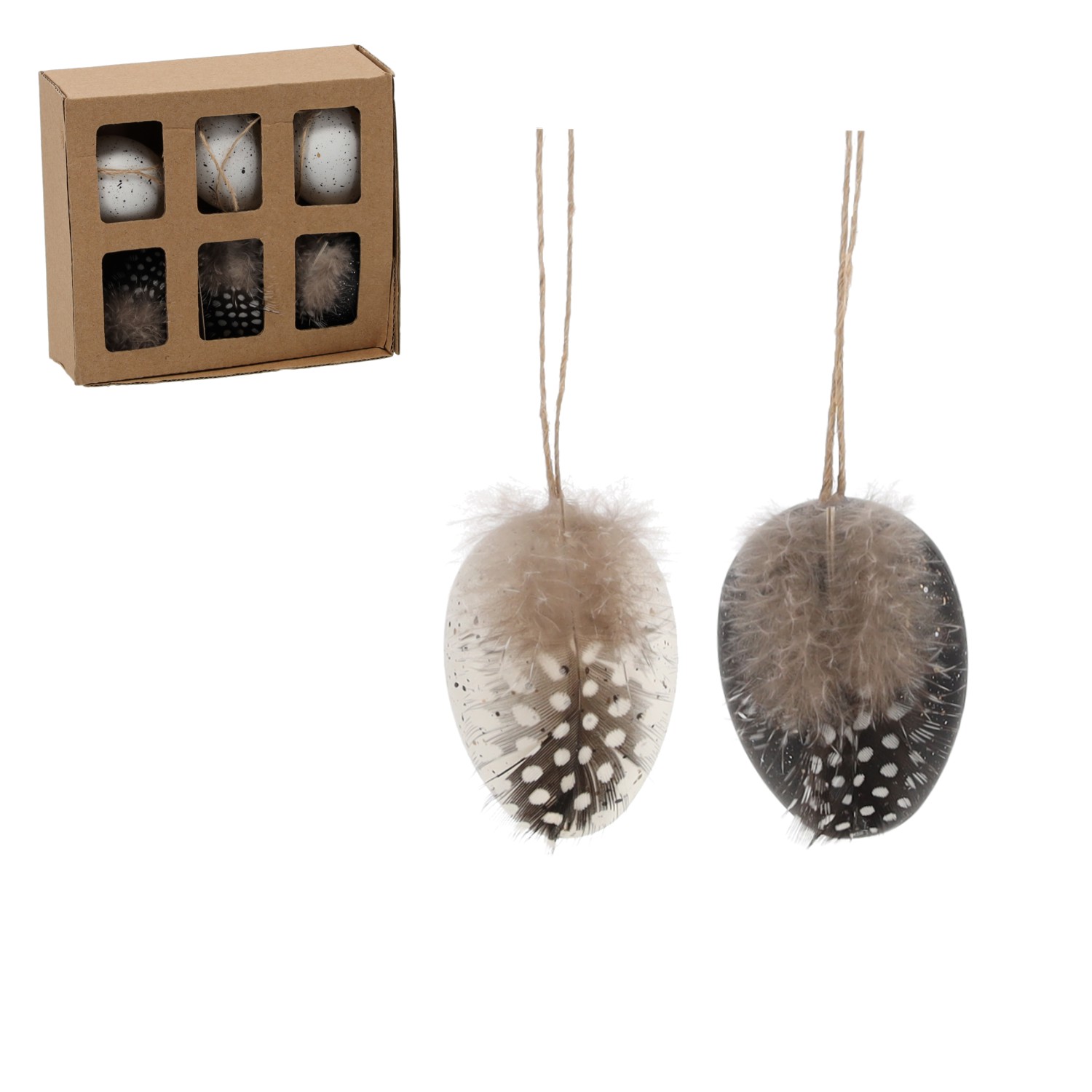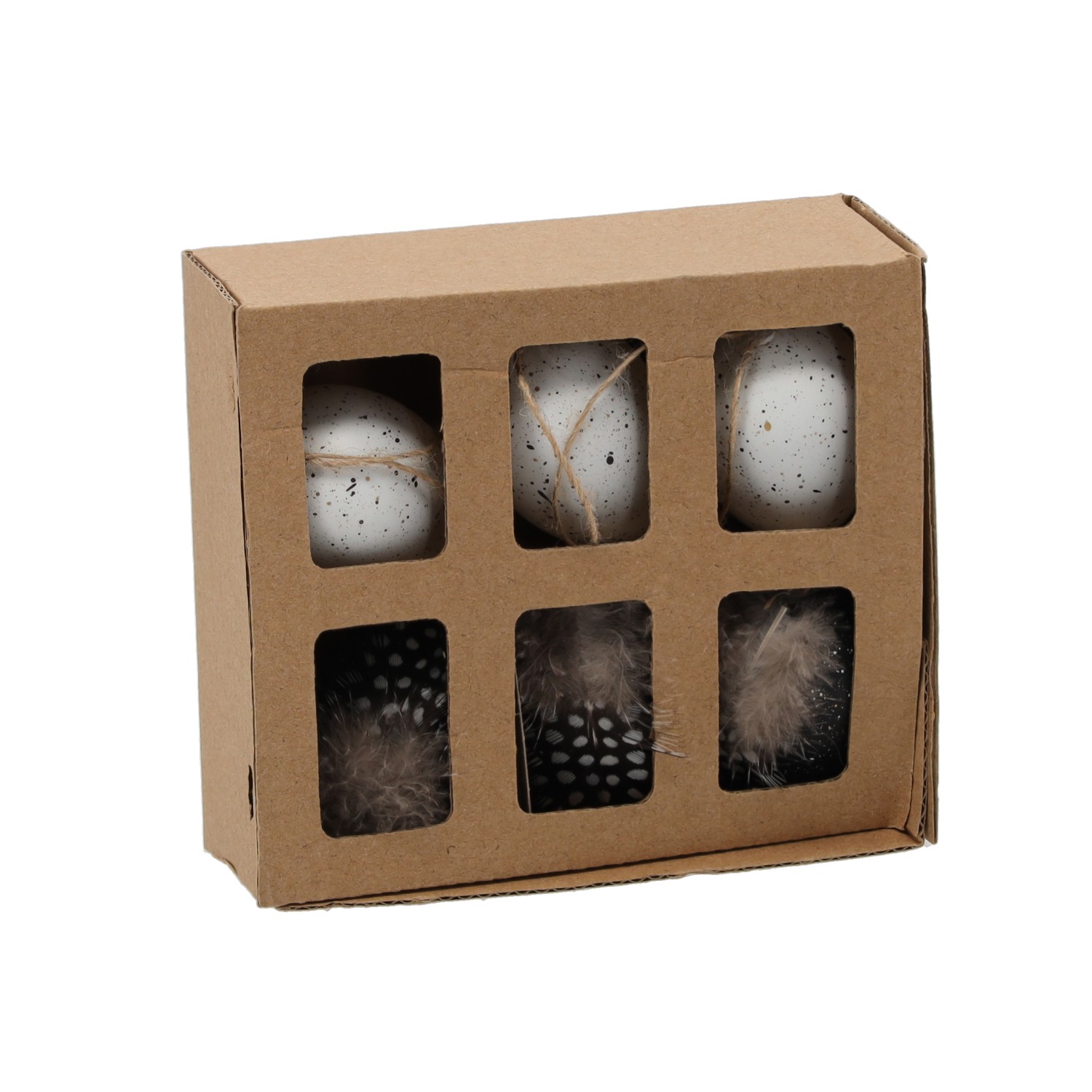 Набір з 6 великодніх яєць з підвіскою – біло-чорні, 14,5 x 13 x 3 см