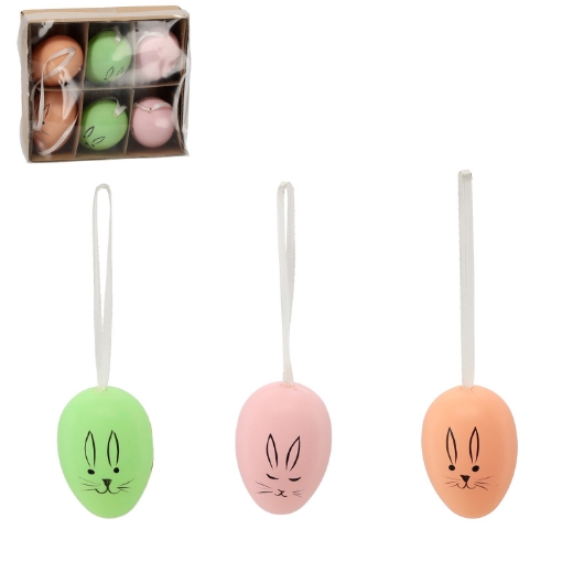 НАБІР З 6 ВЕЛИКОДНІХ ЯЄЦЬ З ПІДВІСКОЮ КРОЛИК (14 x 12 x 5,5 СМ)