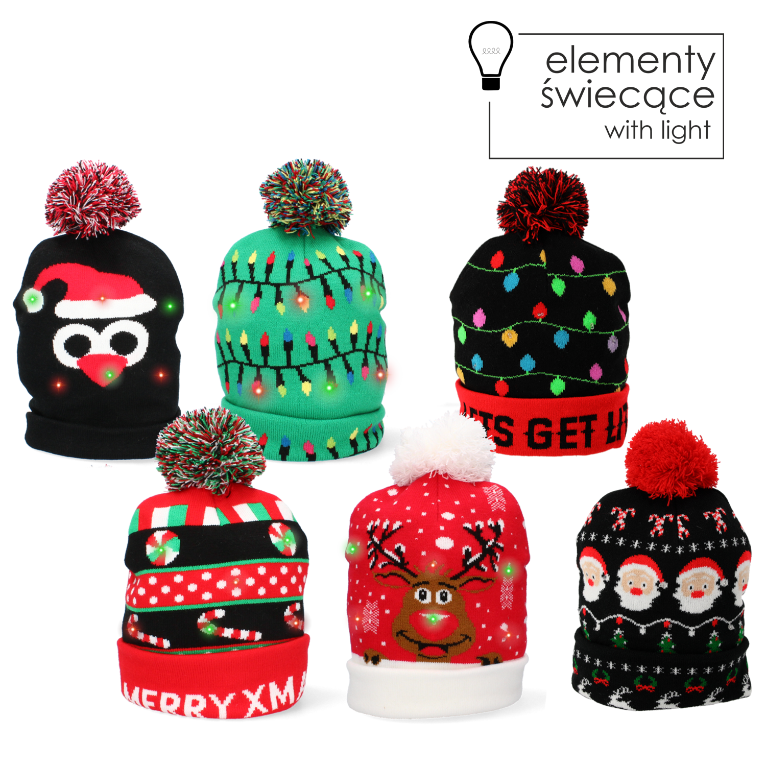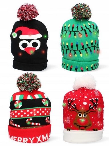 Нехай Ваші свята справді засяють! ✨ Ця унікальна святкова шапка LED - не тільки класичний аксесуар, але й світлова атракція кожного грудневого заходу! Завдяки вбудованим світлодіодам LED і різноманітним візерункам кожна шапка стає маленькою ялинкою на Вашій голові! 🎄