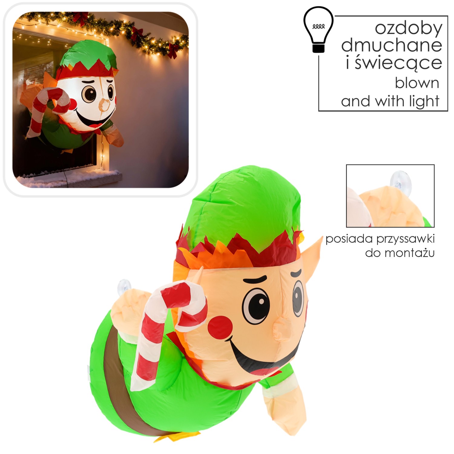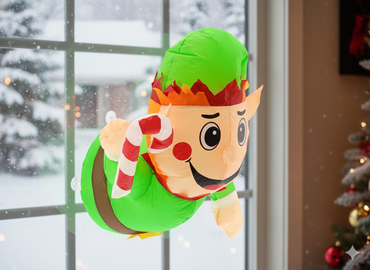 🎄 НАДУВНИЙ ЕЛЬФ НА ВІКНО LED 90 СМ – Різдвяна прикраса з присосками 🎅✨