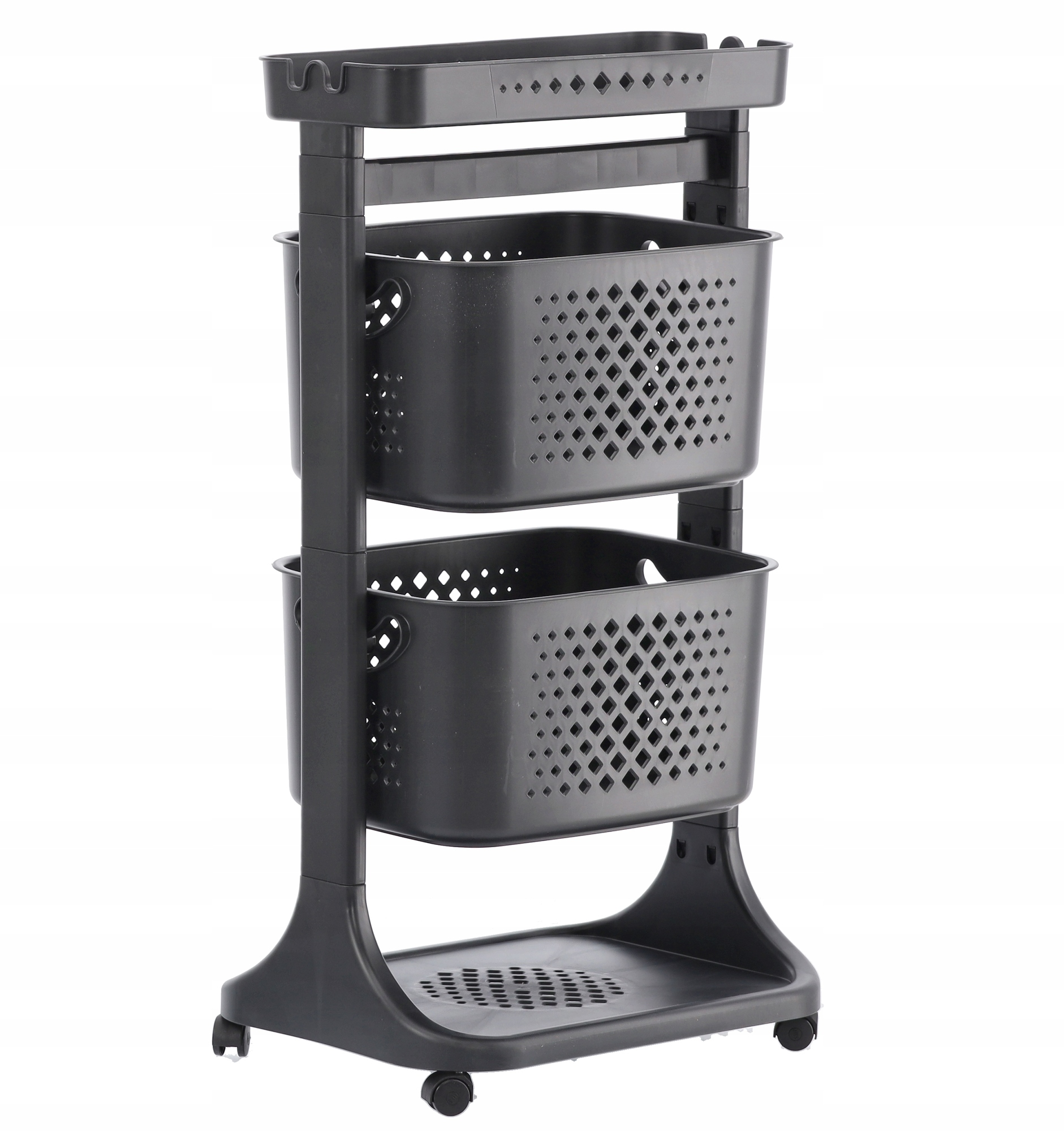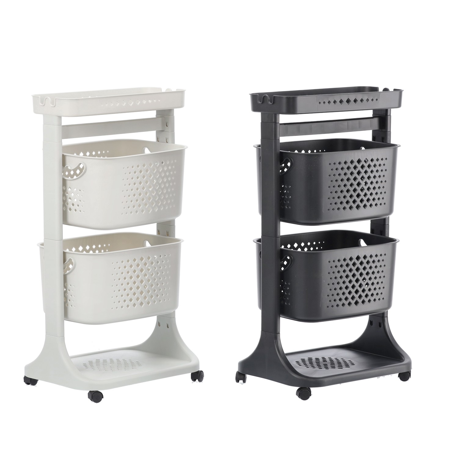🌟 Пластиковий стелаж на колесах з 2 кошиками та полицями | Мобільний органайзер – білий / чорний 🌟
