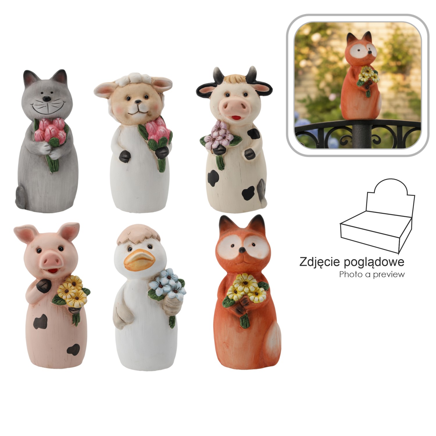 Накладки на паркан — керамічні фігурки тварин, мають отвір знизу, що дозволяє їх надягати.Декоративні накладки на паркан у вигляді чарівних фігурок тварин. Виготовлені з кераміки, стійкі до атмосферних умов. Ідеально підходять для прикраси огорож, балконів або альтанок – додають гумору та характеру будь-якому зовнішньому простору.Доступні моделі та розміри:Корова: 11,9 × 9,3 × 22,7 смЛисиця: 10,2 × 9,9 × 22,6 смКіт: 10,4 × 10,3 × 22,3 смВівця: 12,5 × 9,2 × 22 смКачка: 11,2 × 9,7 × 22,4 смСвиня: 11,6 × 9,9 × 22,4 см