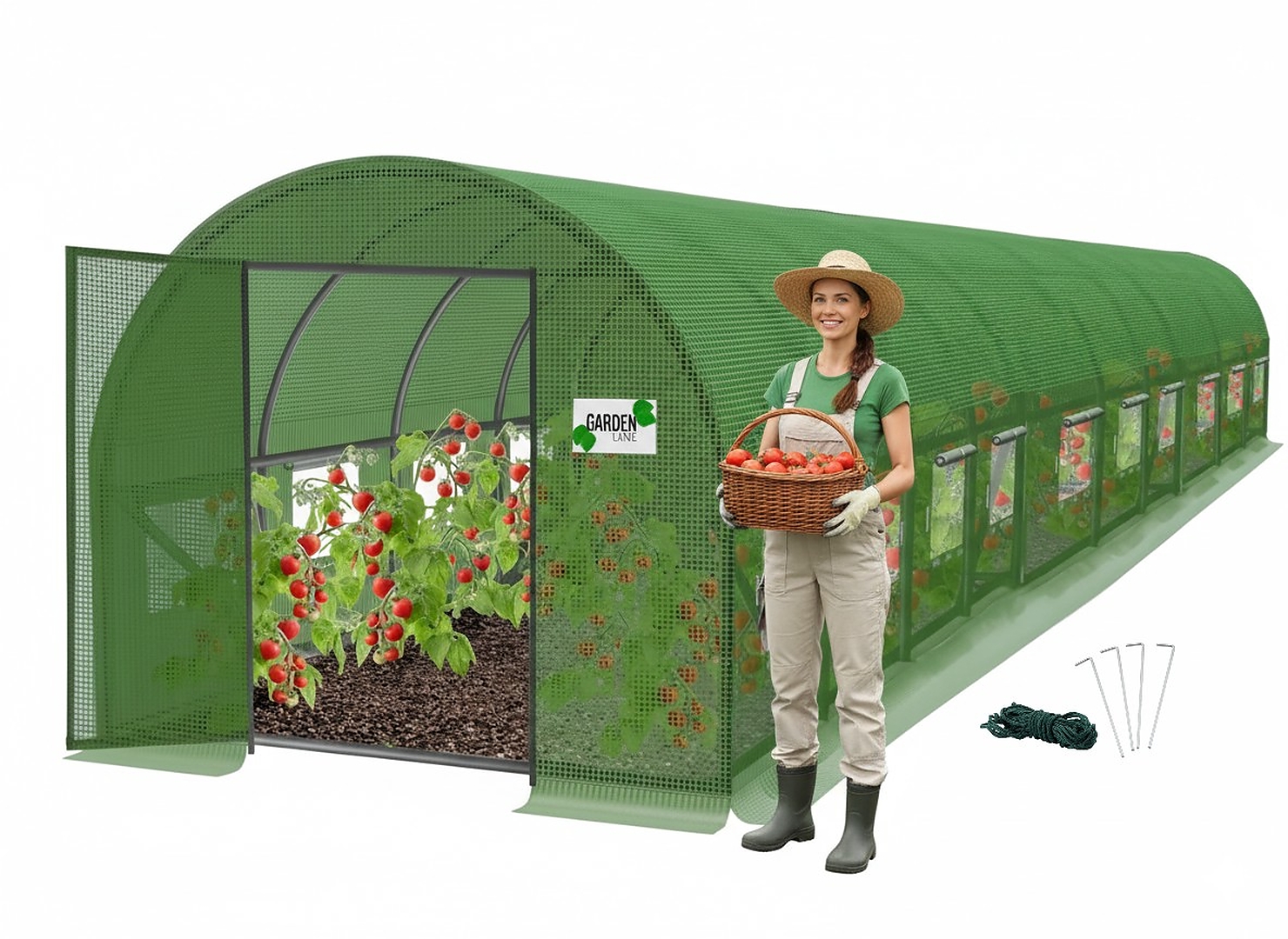 Цей садовий тунель — це елегантне, міцне і продумане рішення для кожного садівника — від любителя до досвідченого городника. Ви отримуєте міцну конструкцію, зручні двері на петлях, чудову вентиляцію і плівку, яка витримає весь сезон без втрати якості.