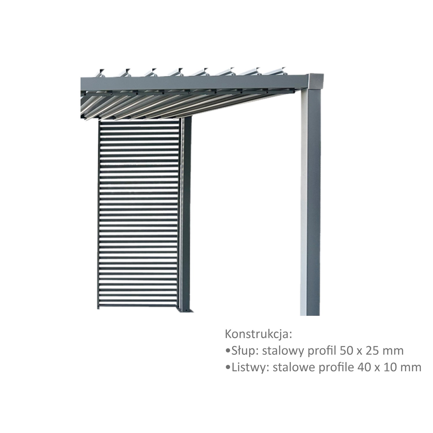 Ролета підходить до перголиTUN5122.👉Пергола доступна в нашій пропозиції, завдяки чому ви можете створити цілісний і функціональний комплект, підібраний під ваш зовнішній простір.