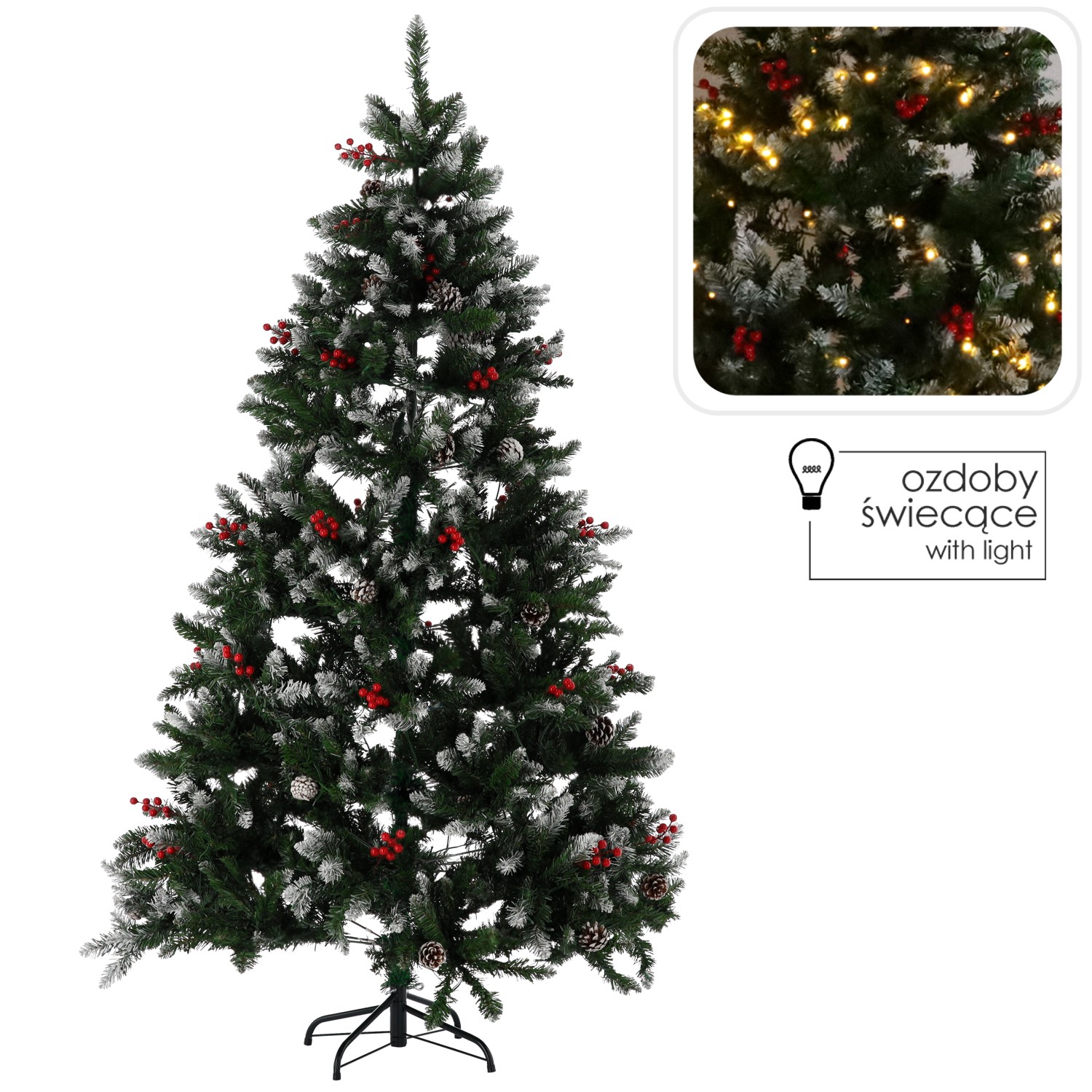 Засніжена ялинка LED, прикрашена горобиною та шишками. Ялинка складається з 3 частин та підставки з 3 гвинтами для монтажу.Висота: 180 смДіаметр: 110 смКількість гілок: 896Тип: Hinged (шарнірна система розкладання › завдяки чому вони самостійно розкладаються)Стійка: металеваКількість діодів: 340 LEDКолір діодів: теплий білийПостійне світлоДовжина шнура живлення: 2 мНапруга: 230 В
