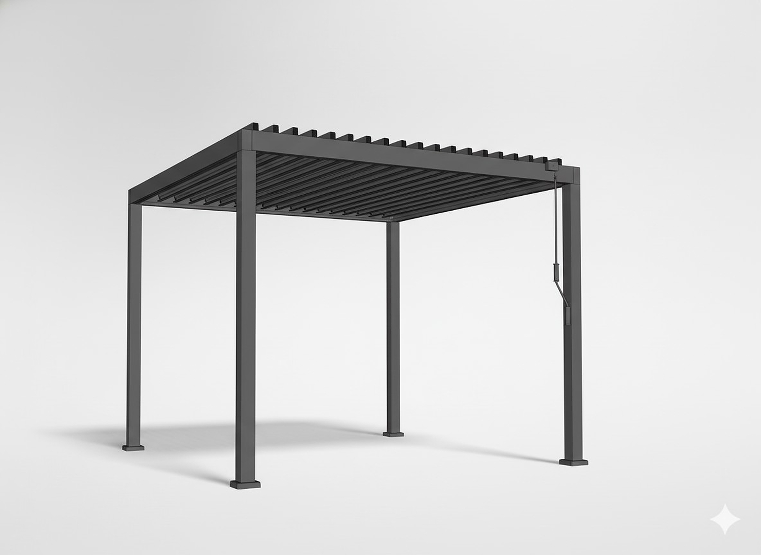 Міцна алюмінієва конструкція – виготовлена з високоякісного алюмінію, стійкого до корозії, вологи та УФ-випромінювання. Забезпечує довгий термін експлуатації перголи та бездоганний вигляд протягом багатьох сезонів 🌦️