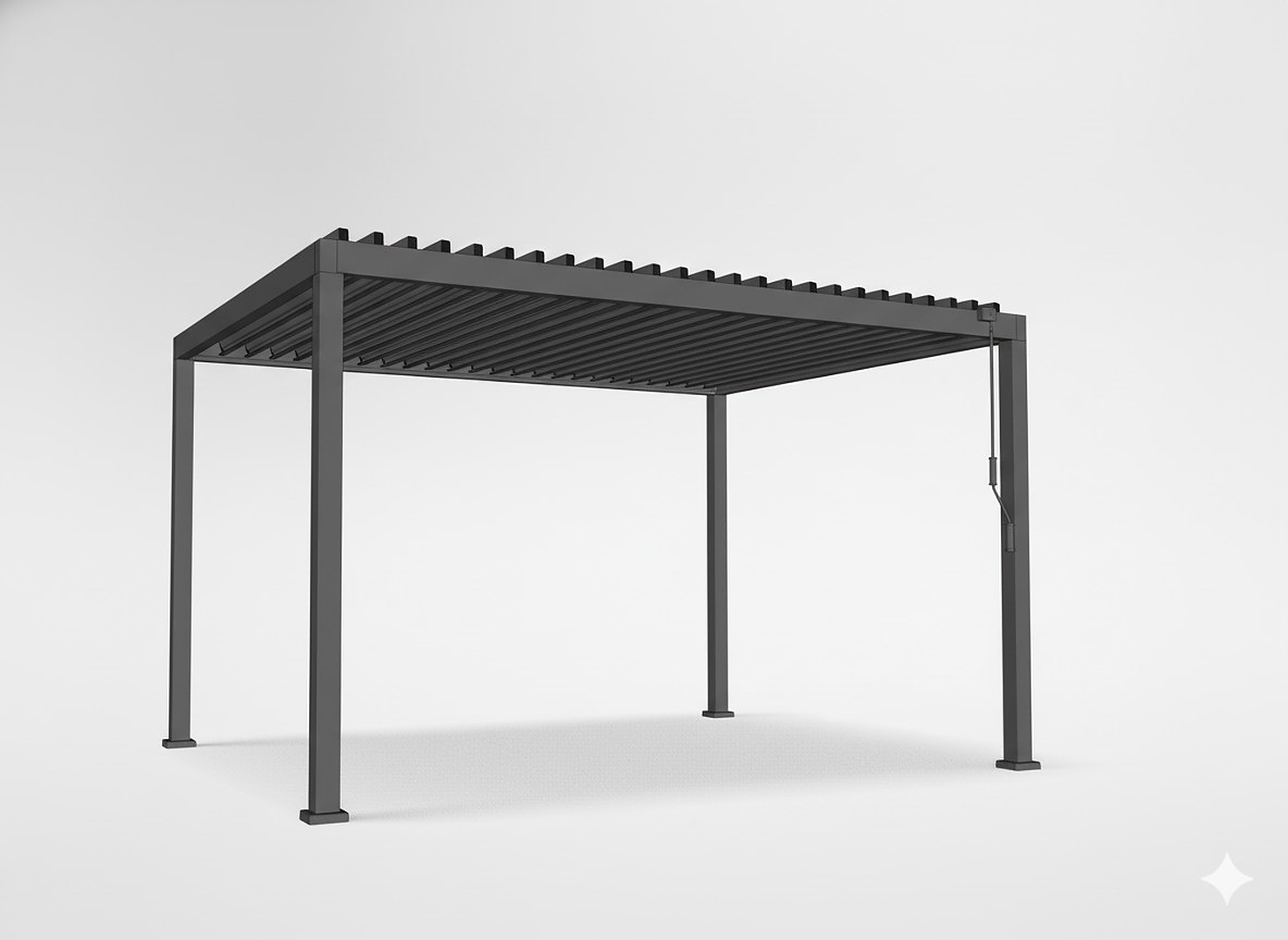 Міцна алюмінієва конструкція – виготовлена з високоякісного алюмінію, стійкого до корозії, вологи та УФ-випромінювання. Забезпечує довгий термін експлуатації перголи та бездоганний вигляд протягом багатьох сезонів 🌦️