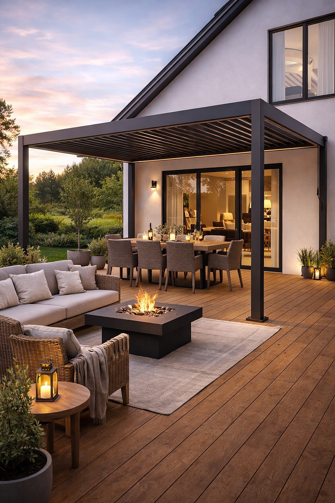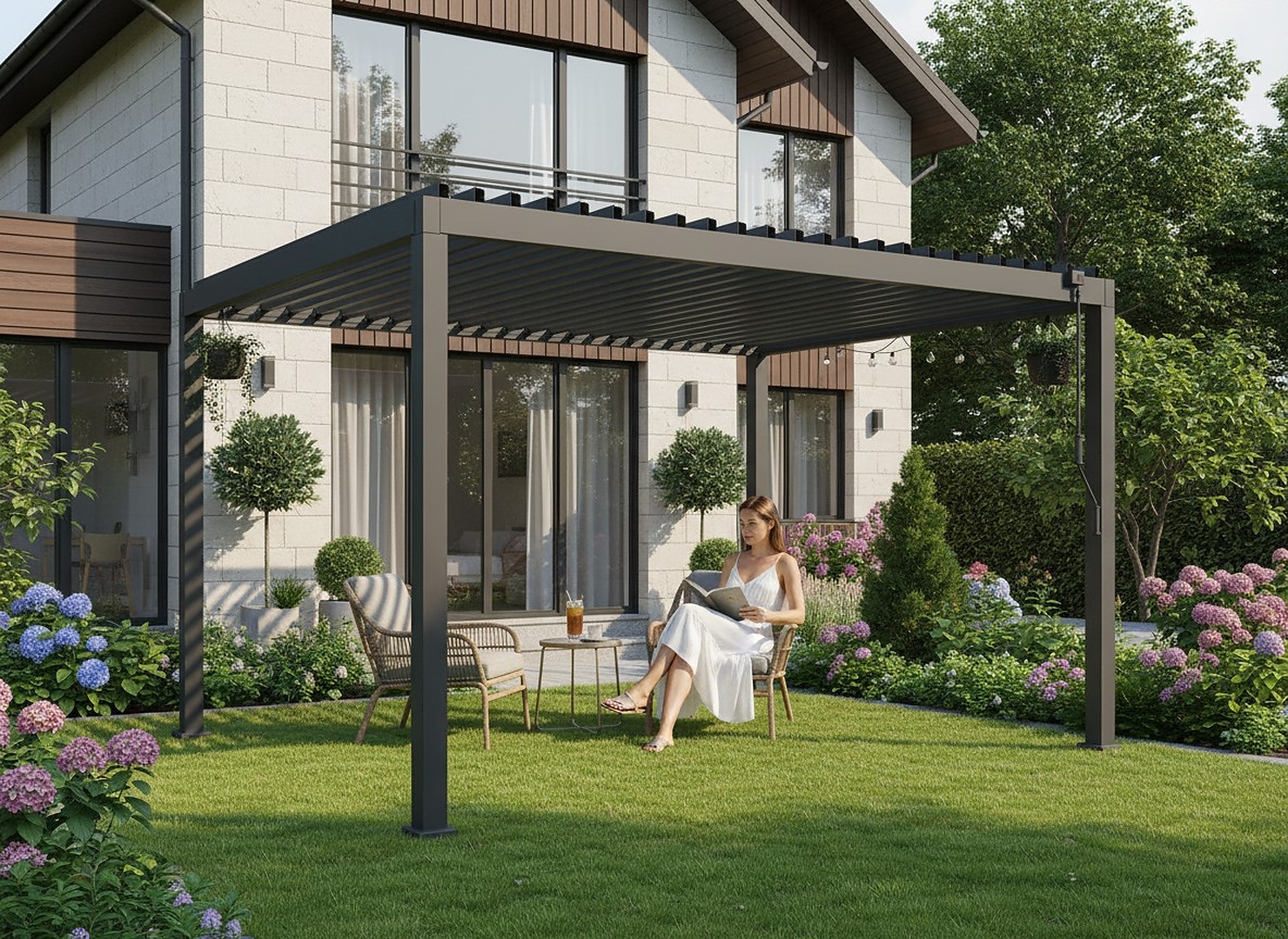 Підібравши відповідні аксесуари, ви можете перетворити перголу на майже закритий приватний простір, ідеальний для відпочинку, зустрічей з близькими або спокійної роботи на свіжому повітрі 🌿