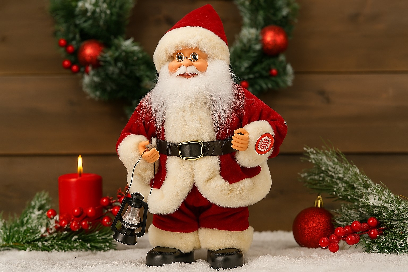 🎅 САНТА КЛАУС З ЛІХТАРИКОМ - ТАНЦЮЮЧИЙ З МЕЛОДІЄЮ 30 СМ 🎶