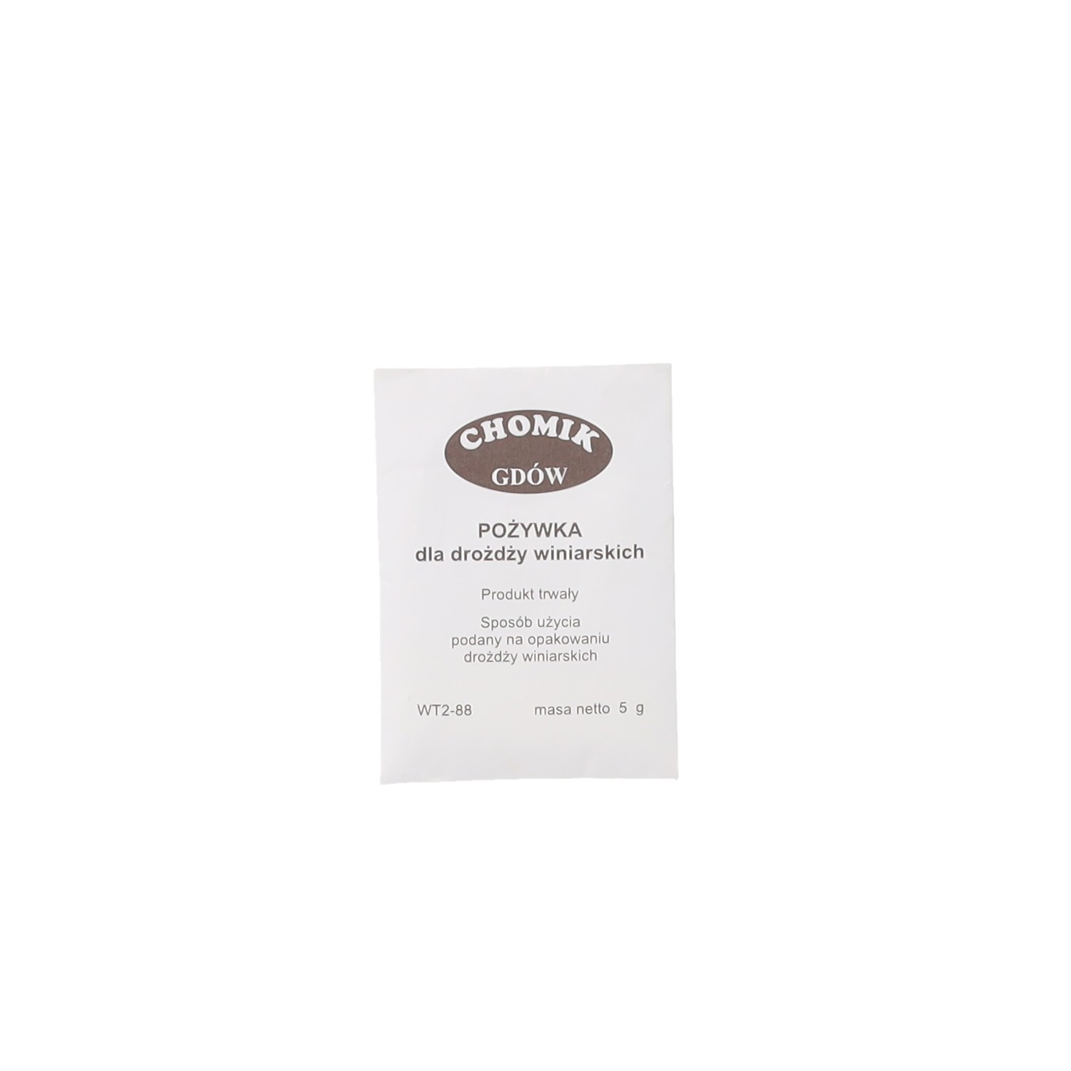 Поживна суміш для дріжджів гарантує їх розвиток і забезпечує правильний перебіг бродіння. Продукт є стійким і не зазнає змін під час зберігання.Рекомендуємо використовувати поживну суміш разом з дріжджами марки Zamojscy. Оптимальні пропорції становлять 1:1, тобто на одну упаковку дріжджів слід використовувати одну упаковку поживного середовища. Використовуйте поживне середовище відповідно до рекомендацій, наведених в інструкції до винних дріжджів.