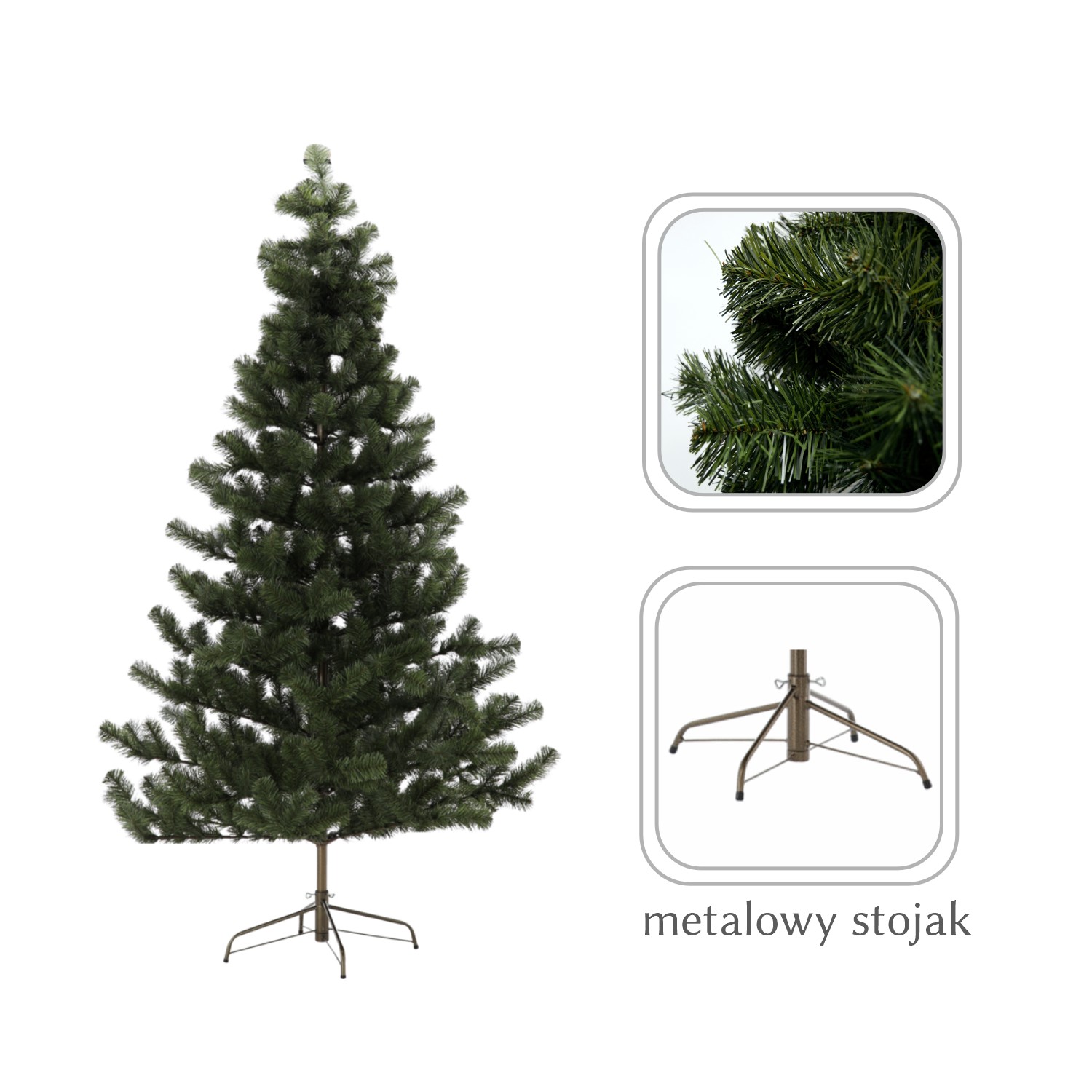 Металева підставка гарантує стабільність, завдяки чому ялинка стоїть рівно і впевнено протягом усього періоду свят.