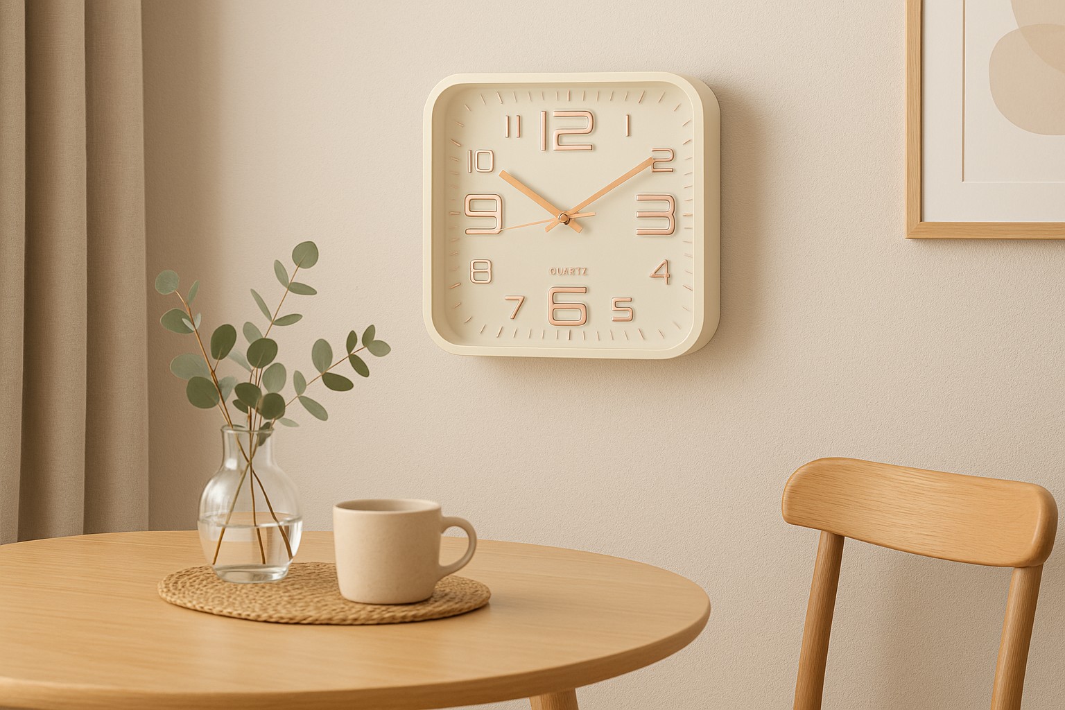 Вибираючи квадратний настінний годинник із золотими цифрами, ви отримуєте позачасовий аксесуар, який поєднує естетику та функціональність. ⏳ Незалежно від того, чи повісите ви його у вітальні, спальні чи офісі, він стане витонченим і водночас ефектним акцентом вашого простору. 🌟