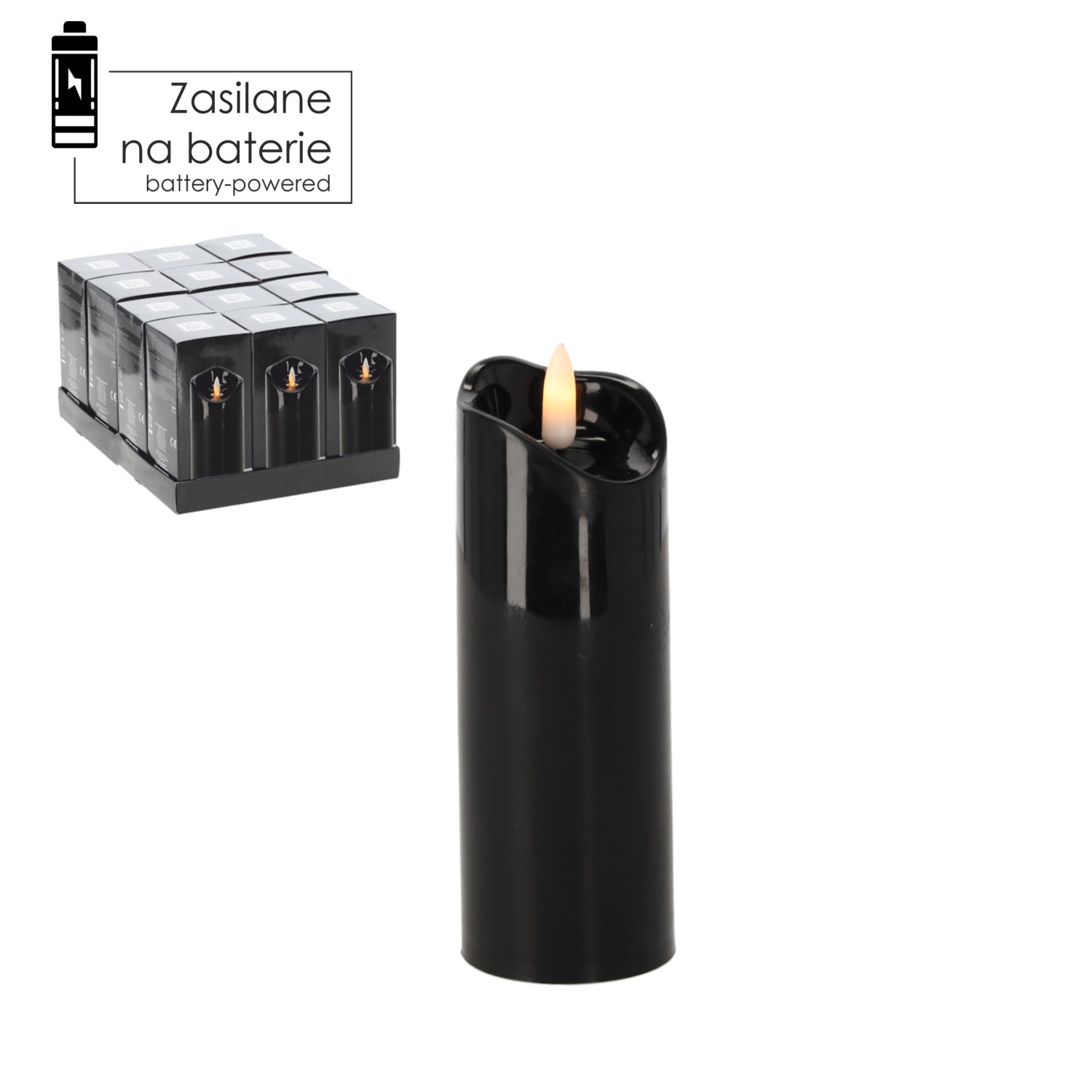 Свічка LED розміром 5 x 15 см чорного кольору. Безпечна та не вимагає обслуговування, ідеально підходить для прикрашання надгробків та інтер'єрів.