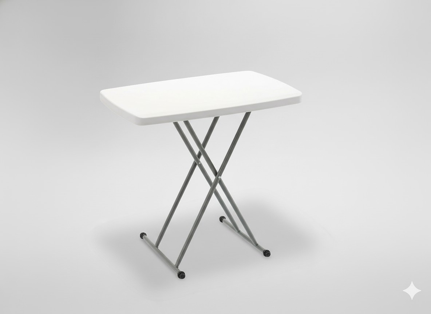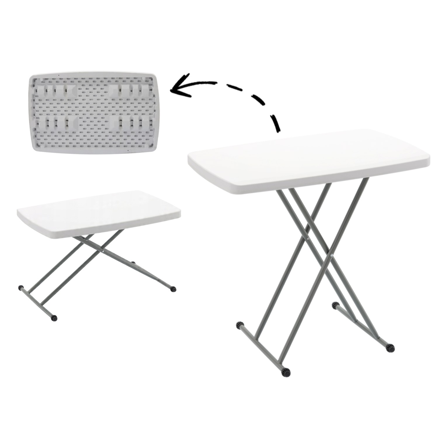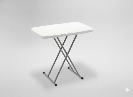 Стабільна конструкція, металеві профілі та естетична біла стільниця забезпечують довговічність і зручність використання. У складеному вигляді він займає мало місця, тому його легко взяти з собою в подорож, на дачу або зберігати в коморі 🚗🧳