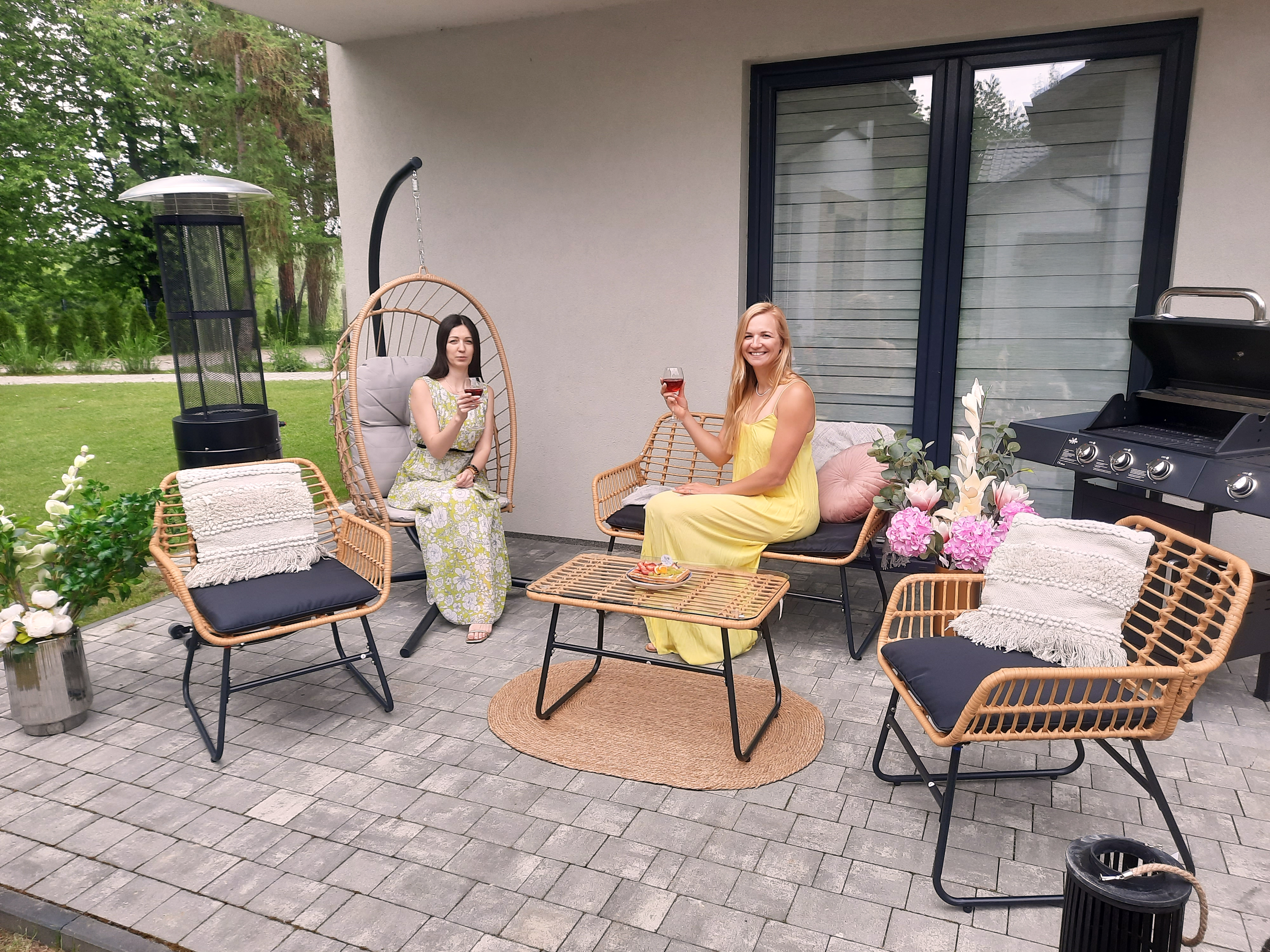 Стильний та функціональний комплект садових меблів, який ідеально підійде для тераси, саду або балкона. Міцна сталева конструкція, елегантний ротанг та зручні подушки забезпечують довговічність та комфорт використання. Скляна стільниця додає елегантності та полегшує догляд за меблями.
