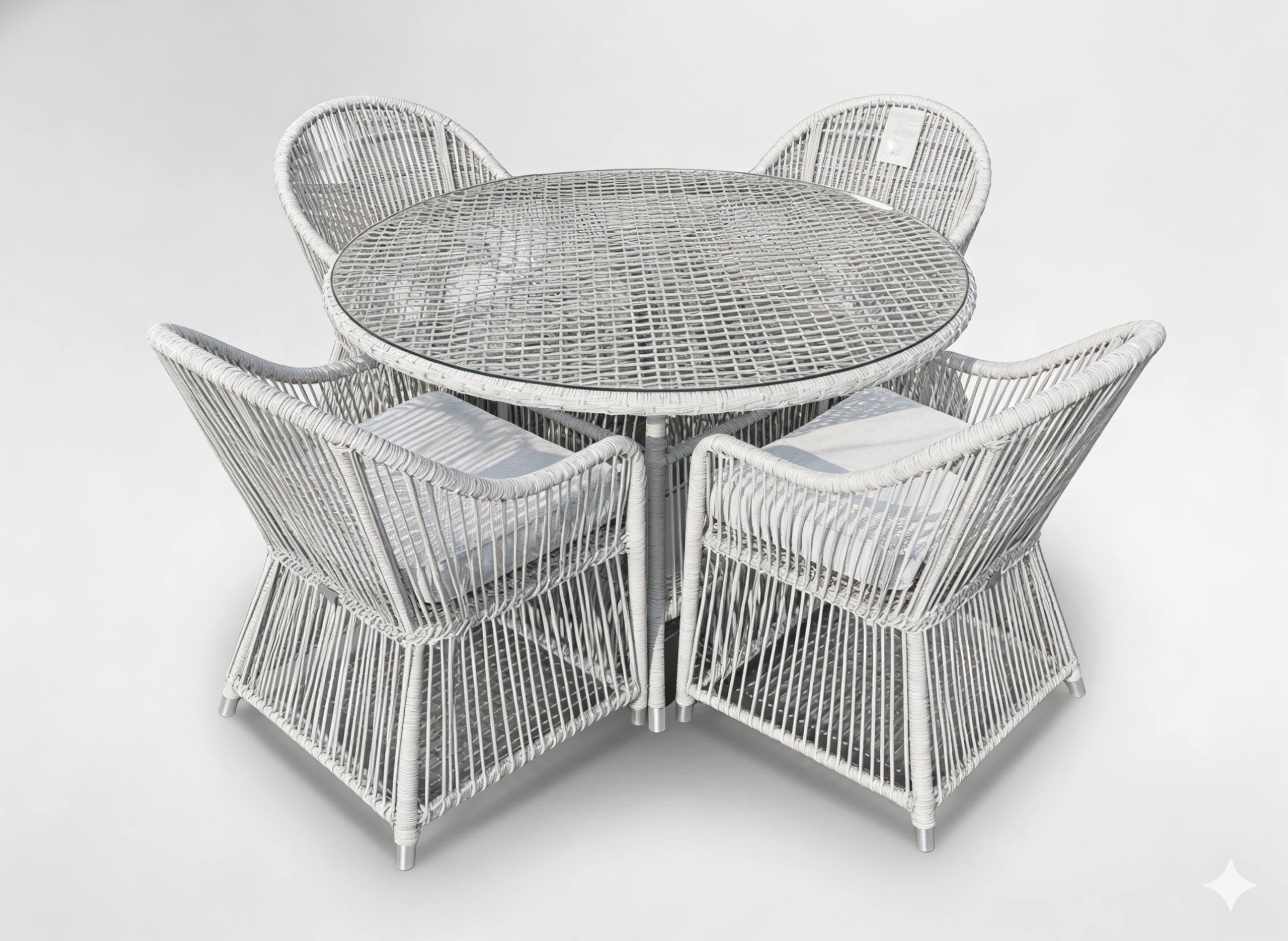 Створіть затишну та елегантну зону відпочинку в саду, на терасі або балконі. Цей стильний комплект садових меблів, що складається з 4 крісел та круглого столика, є ідеальним поєднанням сучасного дизайну, міцних матеріалів та щоденного комфорту ☀️☕