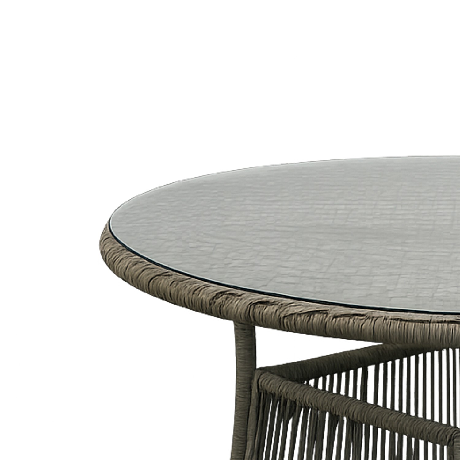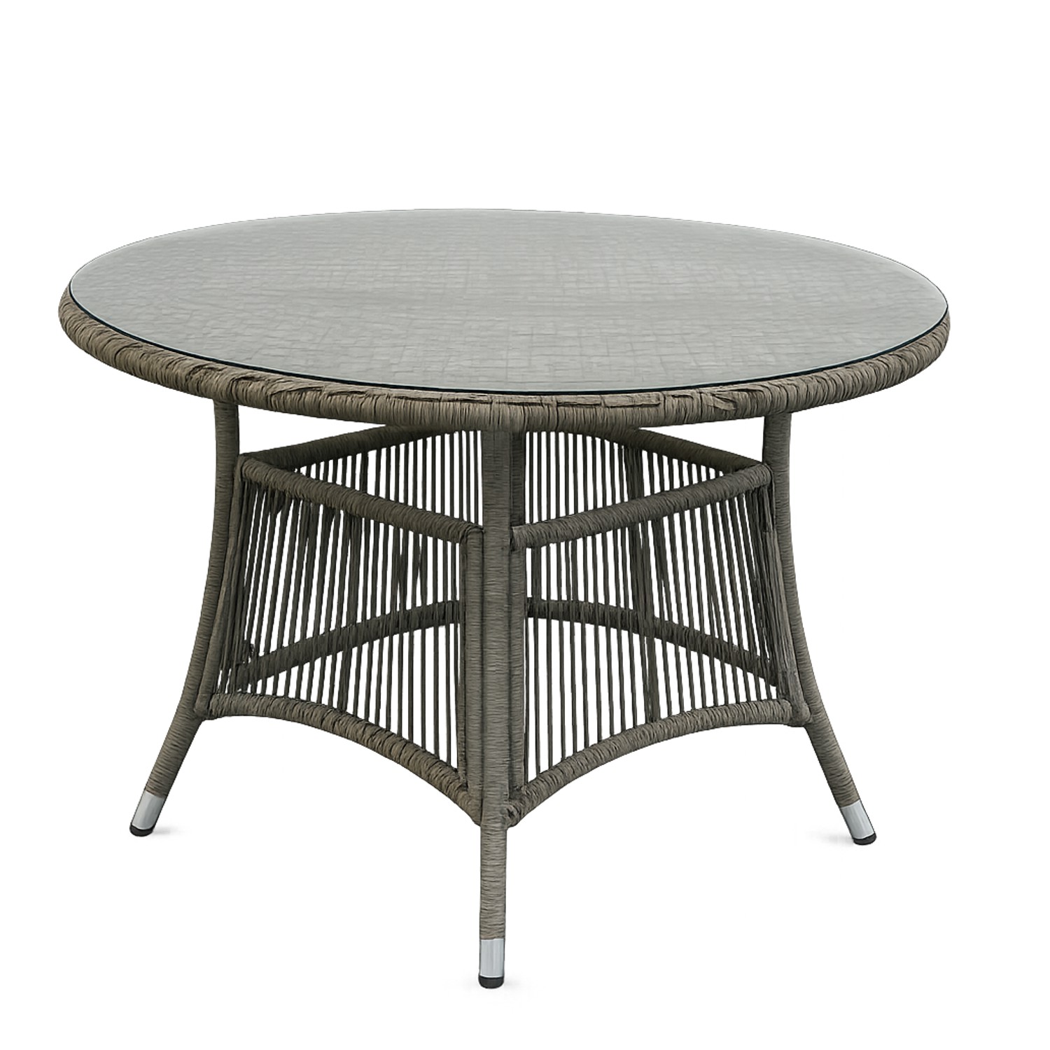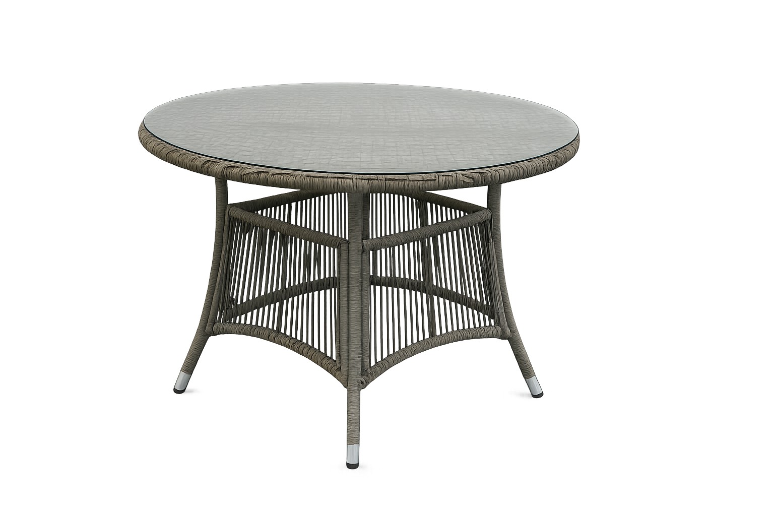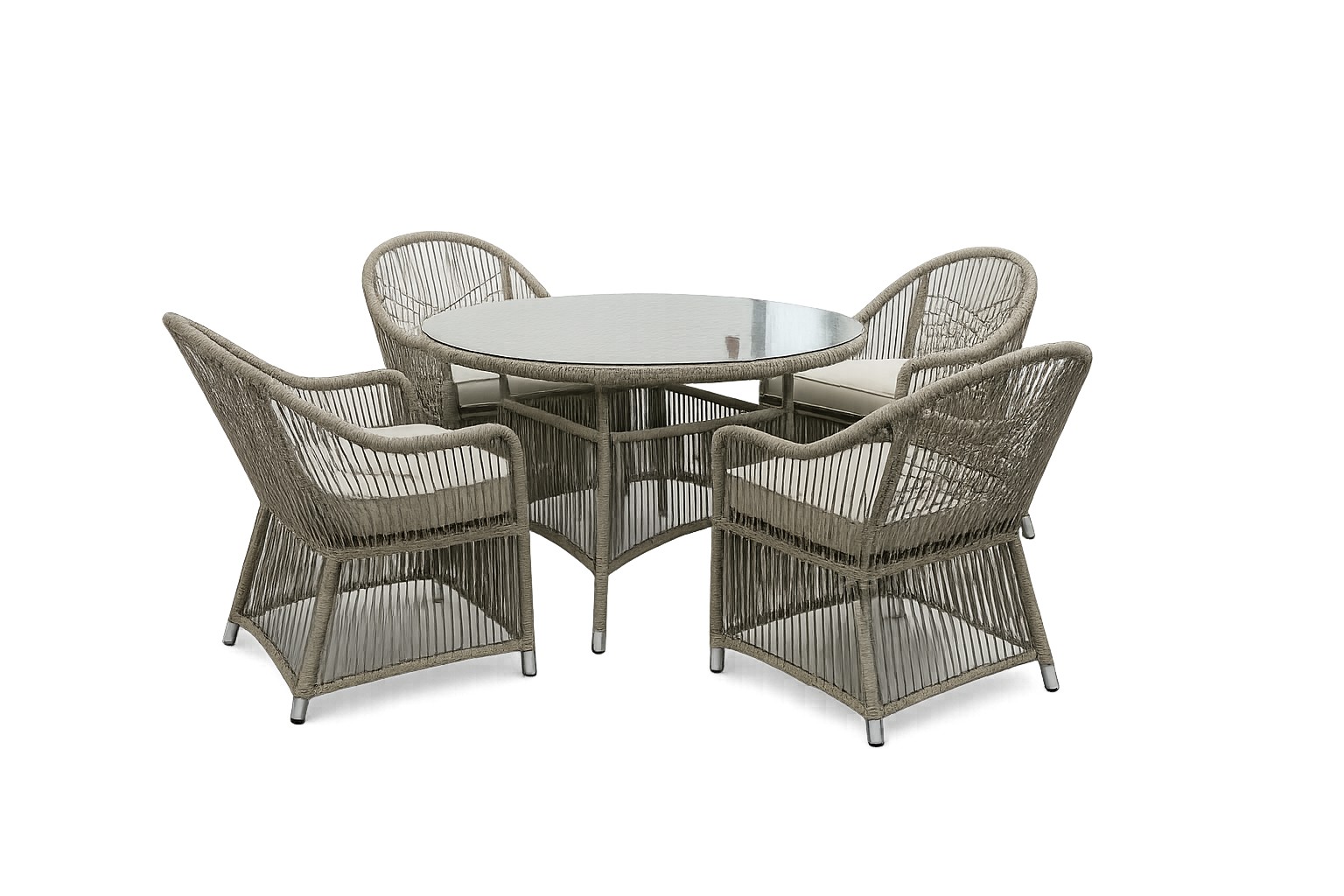 Матеріали:• Конструкція: алюміній• Ротанг: плоский, 5,5 × 3,2 мм, відкритий плетіння• Стільниця: загартоване скло 5 мм• Подушки: поліестер, товщина 8 см