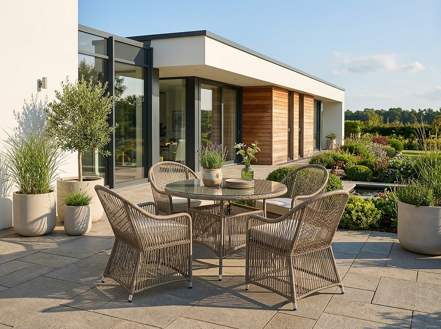 ✔️ Компактний комплект, ідеальний для саду, тераси та балкона✔️ Міцний алюмінієвий каркас та сучасний ротанг✔️ Зручні подушки зі знімними наволочками✔️ Круглий столик із загартованим склом – стиль і функціональність✔️ Універсальна, елегантна кольорова гама
