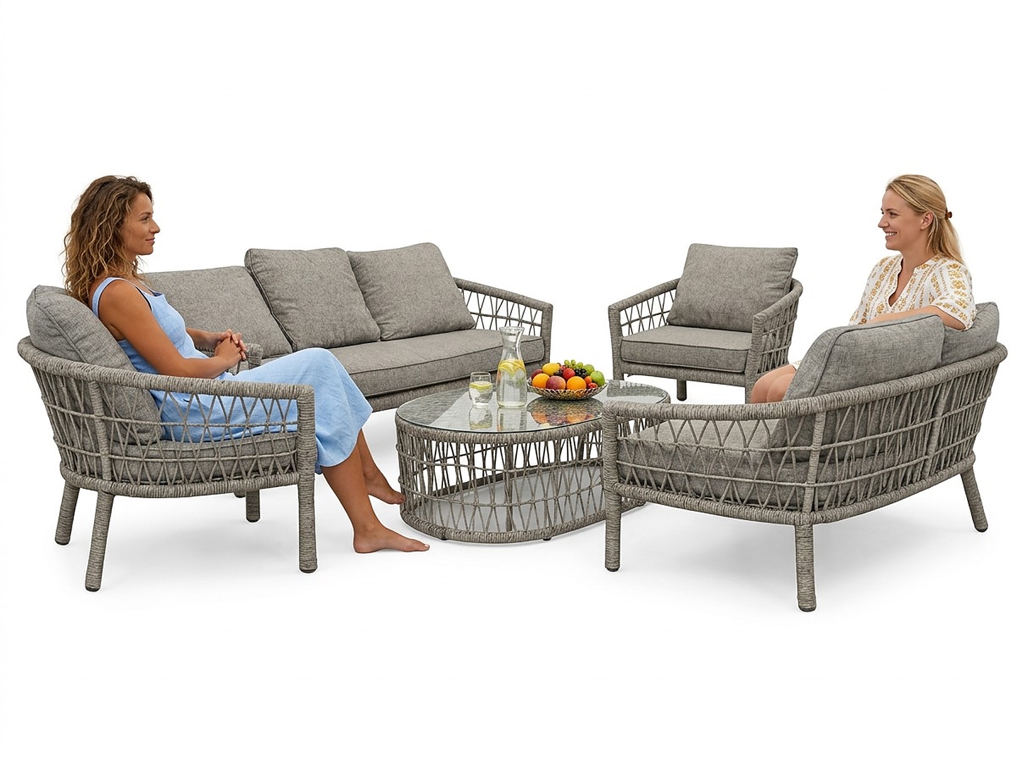 Стримана сіра кольорова гама у поєднанні з декоративним відкритим плетінням ратану надає меблям позачасовий характер і робить набір ідеальним доповненням як до сучасних, так і до класичних дизайнів зовнішніх просторів ✨
