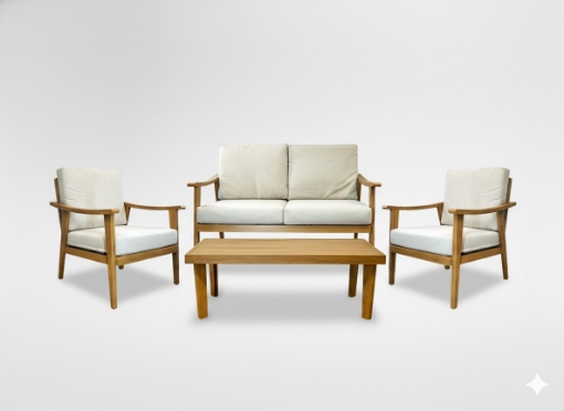 Сучасний і стильний комплект алюмінієвих меблів, який ідеально підійде для тераси, саду або зони відпочинку. Конструкція кольору дерева та елегантне плетіння з мотузки на спинці надають комплекту виняткового характеру. Зручні подушки товщиною 10 см забезпечують високий комфорт використання.