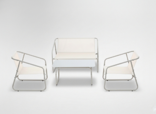 Меблі виготовлені з високоякісної сталі та текстильного матеріалу, стійкого до змінних погодних умов. Незважаючи на невелику вагу, вони надзвичайно стабільні, що гарантує їх тривале використання.