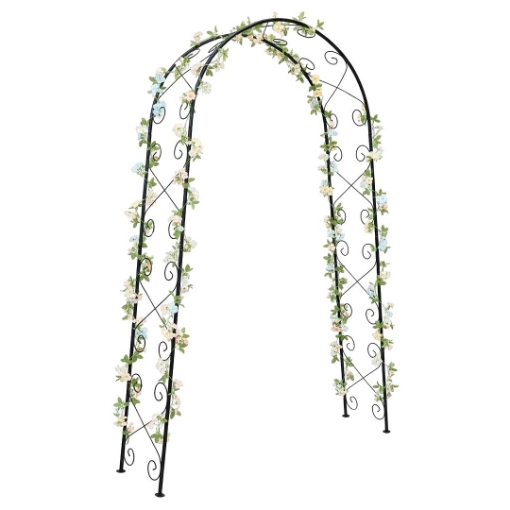 Садова пергола - Високоякісна садова пергола буде чудово виглядати у вашому саду. Пергола зі стабільною, дуже міцною конструкцією ідеально підійде для людей, які цінують хорошу якість, надійність і незвичайний шарм, який, безсумнівно, додасть пергола вашому саду. Стійка до атмосферних умов завдяки порошковому фарбуванню, вона прикрасить ваш сад. Елегантний вигляд чудово виглядає. Все упаковано в міцну коробку.Металева, стабільна конструкція. Швидкий і дуже простий монтаж. Для саду, тераси або над воротами.Висота: 230 x 110 смШирина однієї стінки: 39 смМатеріал: метал з порошковим фарбуваннямКолір: чорний