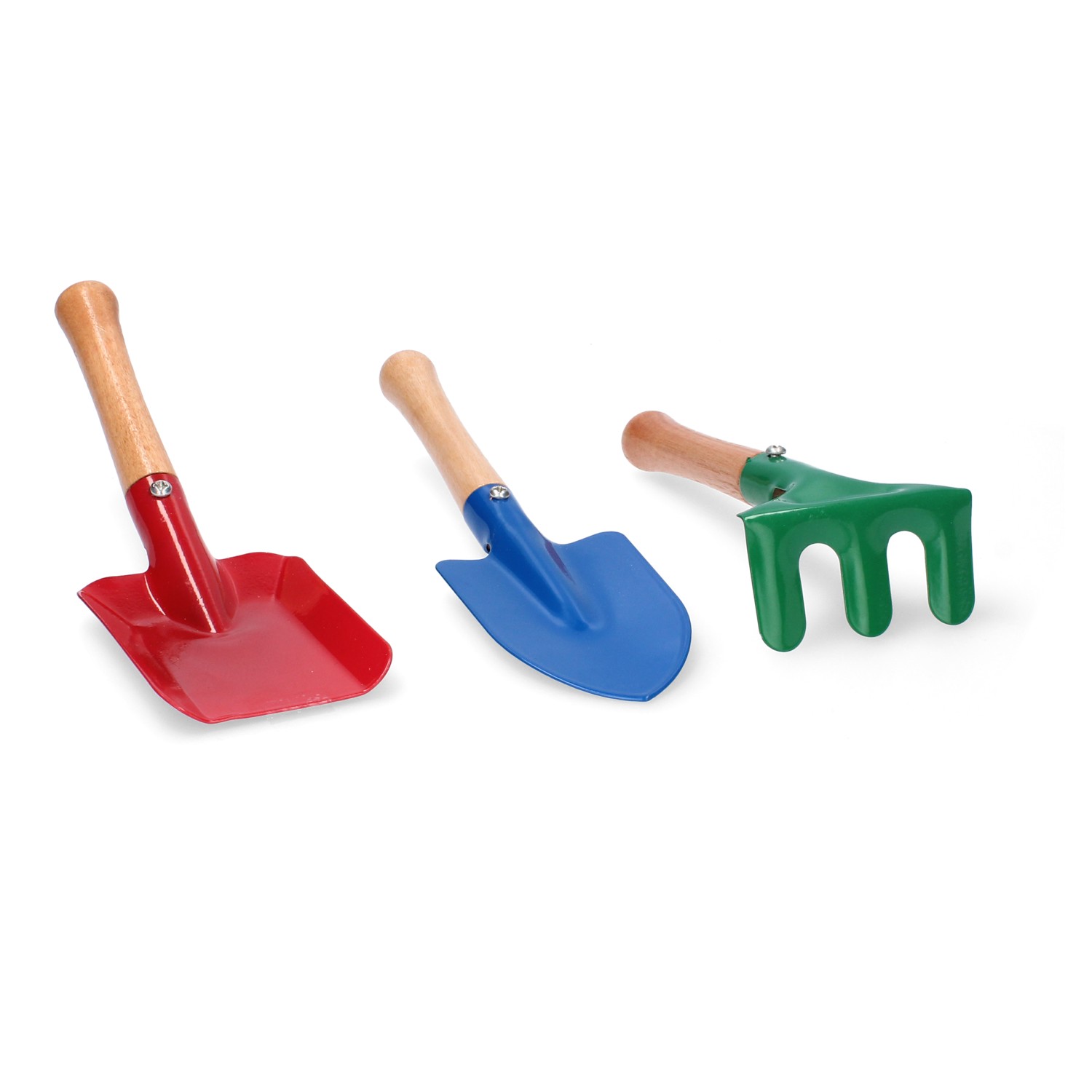 Набір інструментів складається з таких елементів:- лопатка «пісочниця/лопата»,- граблі,- лопатка «штикова».Інструменти виготовлені з металу та мають дерев'яні ручки.