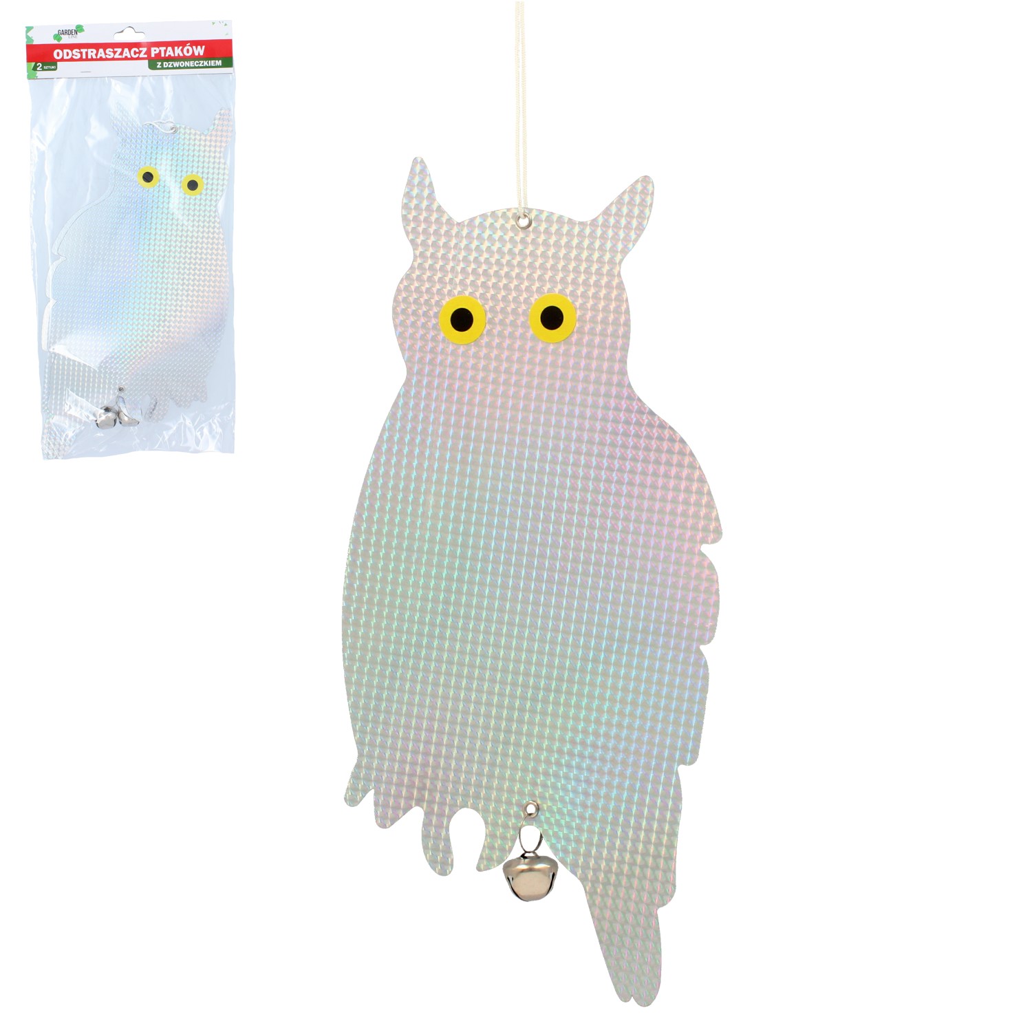 Набір із 2 відлякувачів птахів із дзвіночком — це естетичний та ефективний засіб захисту балконів, садів та ділянок від птахів. Елементи рухаються під вітром, а ніжний звук дзвіночків додатково відлякує непроханих гостей. Відлякувачі можуть також виконувати декоративну функцію, додаючи шарму зовнішнім просторам.