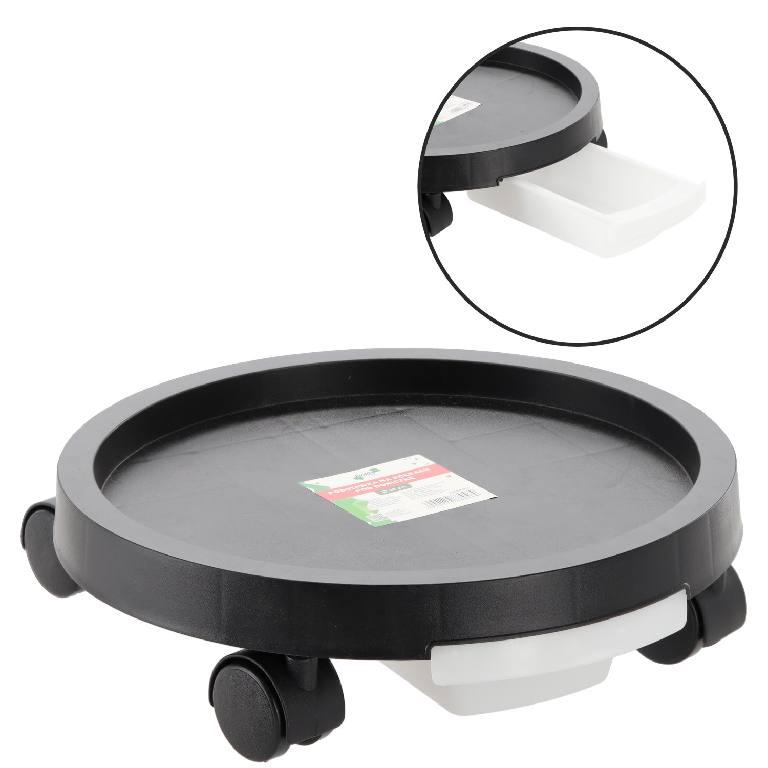 Практична та естетична підставка під горщик діаметром 28 см – ідеальне рішення для зручного переміщення важких рослин у горщиках. Завдяки міцним нейлоновим коліщаткам ви можете вільно змінювати місце розташування рослини, не пошкоджуючи при цьому підлогу.