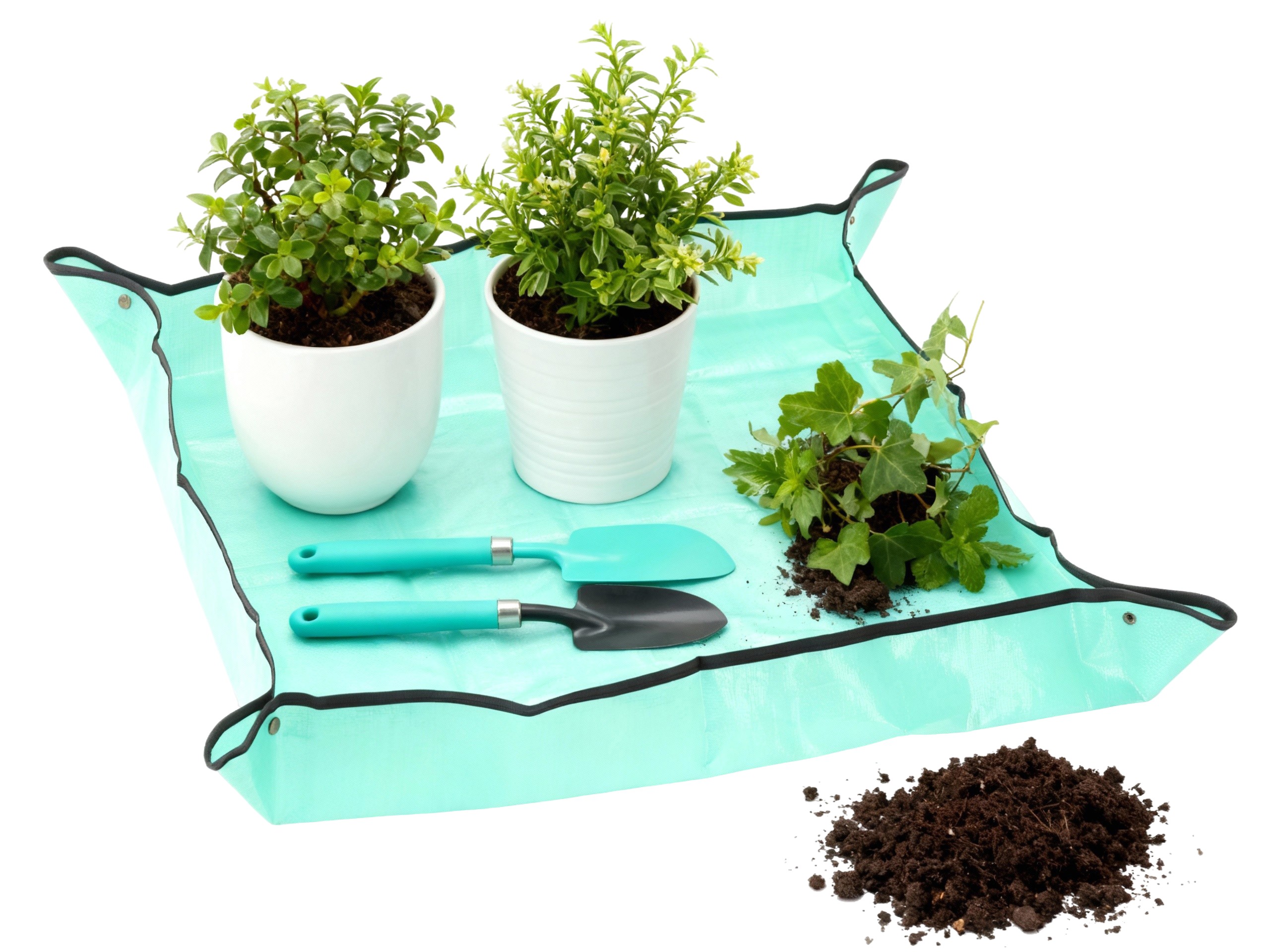 Мата для пересадки рослин – це практичний аксесуар, який полегшує акуратну і чисту роботу з землею вдома, на балконі або в саду. Завдяки піднятим краям вона запобігає розсипанню грунту і води, захищаючи стільницю, підлогу або підвіконня. Після закінчення роботи її можна легко згорнути і прибрати — ідеально підходить для любителів рослин і порядку.