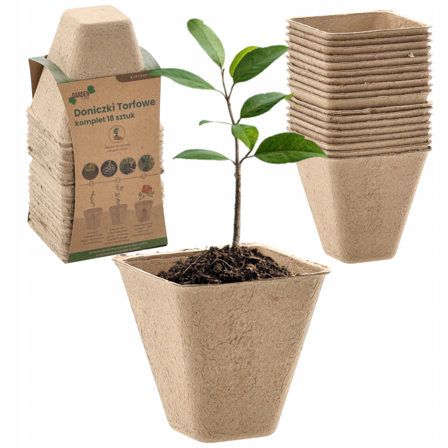 Комплект 18 штук торф'яних горщиків 8 x 8 x 8 см 🌱