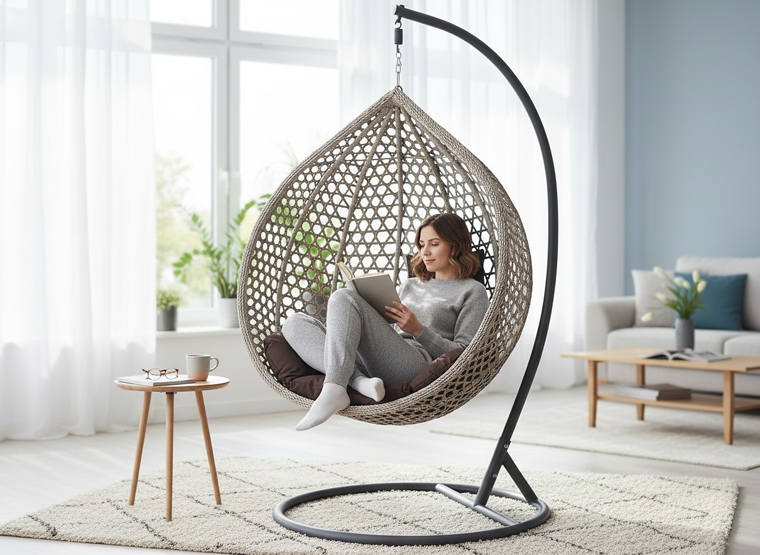 Підвісне крісло XL — ідеальний вибір для тих, хто цінує простір, зручність і стиль. Воно чудово поєднується з сучасними та природними інтер'єрами — стане вашим улюбленим місцем відпочинку в саду або на веранді 🍃