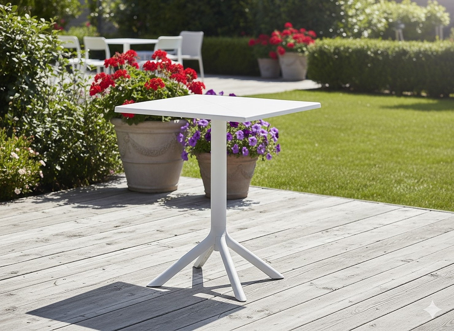 Внесіть у свій зовнішній простір легкість, свіжість і позачасову елегантність. Цей білий квадратний садовий столик – ідеальний вибір для тераси, балкона або саду. Проста форма і універсальна кольорова гама роблять столик ідеальним доповненням до будь-якого стилю інтер'єру – від сучасного до класичного ☀️🌿