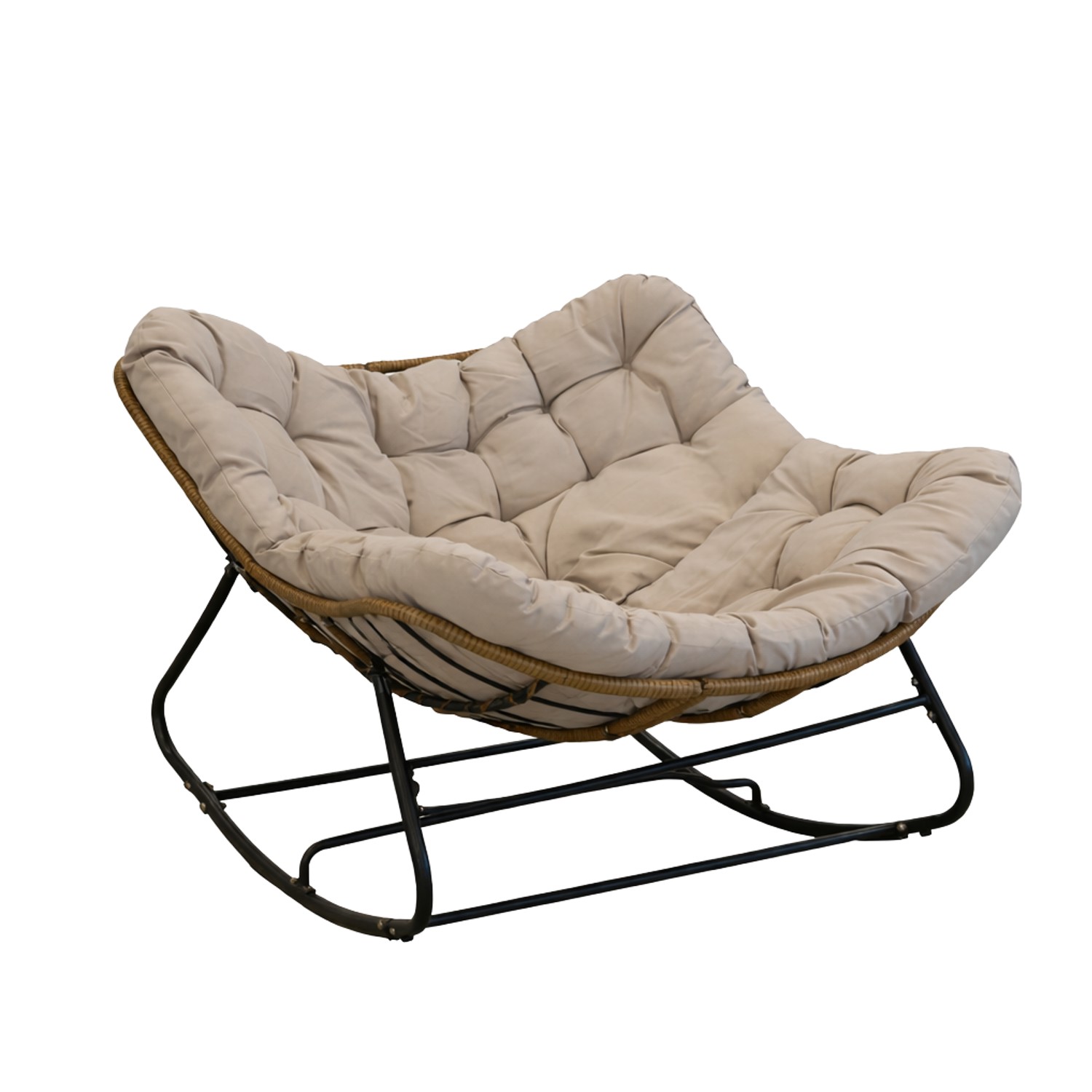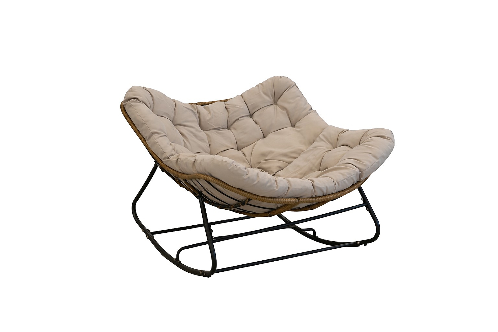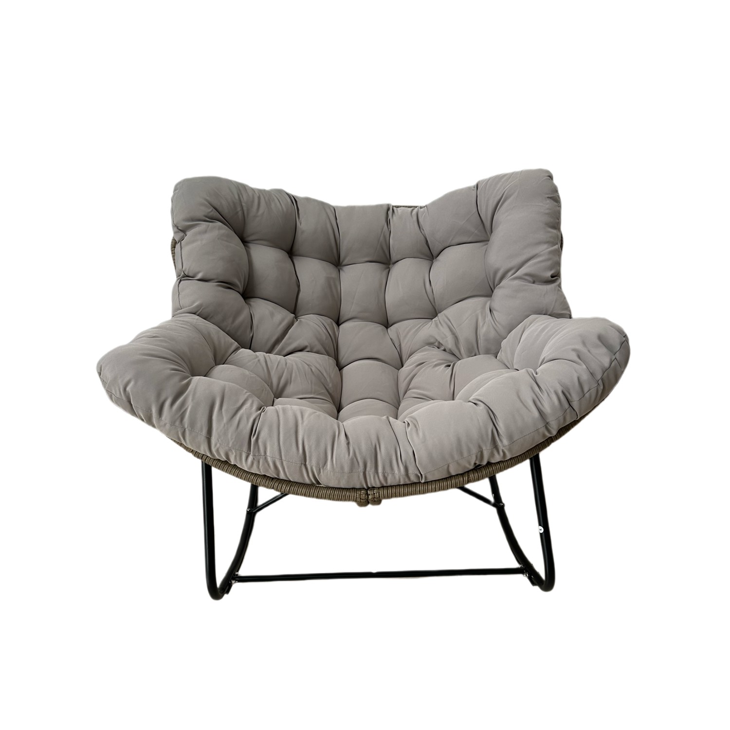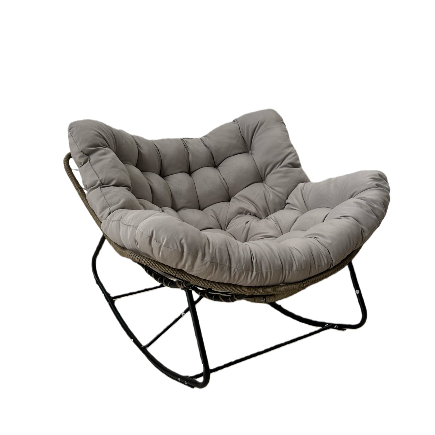 Крісло-гойдалка «SVINGA» — коричневий ротанг і сірі подушки 🌰🌫️