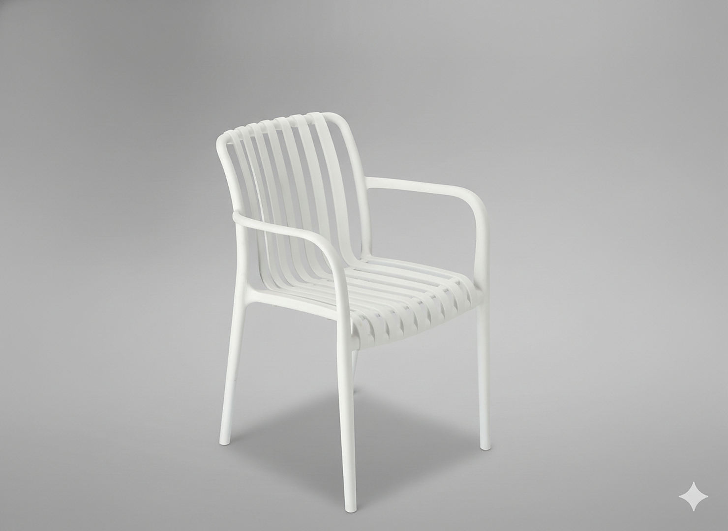 Стілець виготовлений з високоякісного пластику з УФ-фільтром, завдяки чому він стійкий до сонячних променів і атмосферних умов, зберігаючи естетичний вигляд протягом тривалого часу 🤍