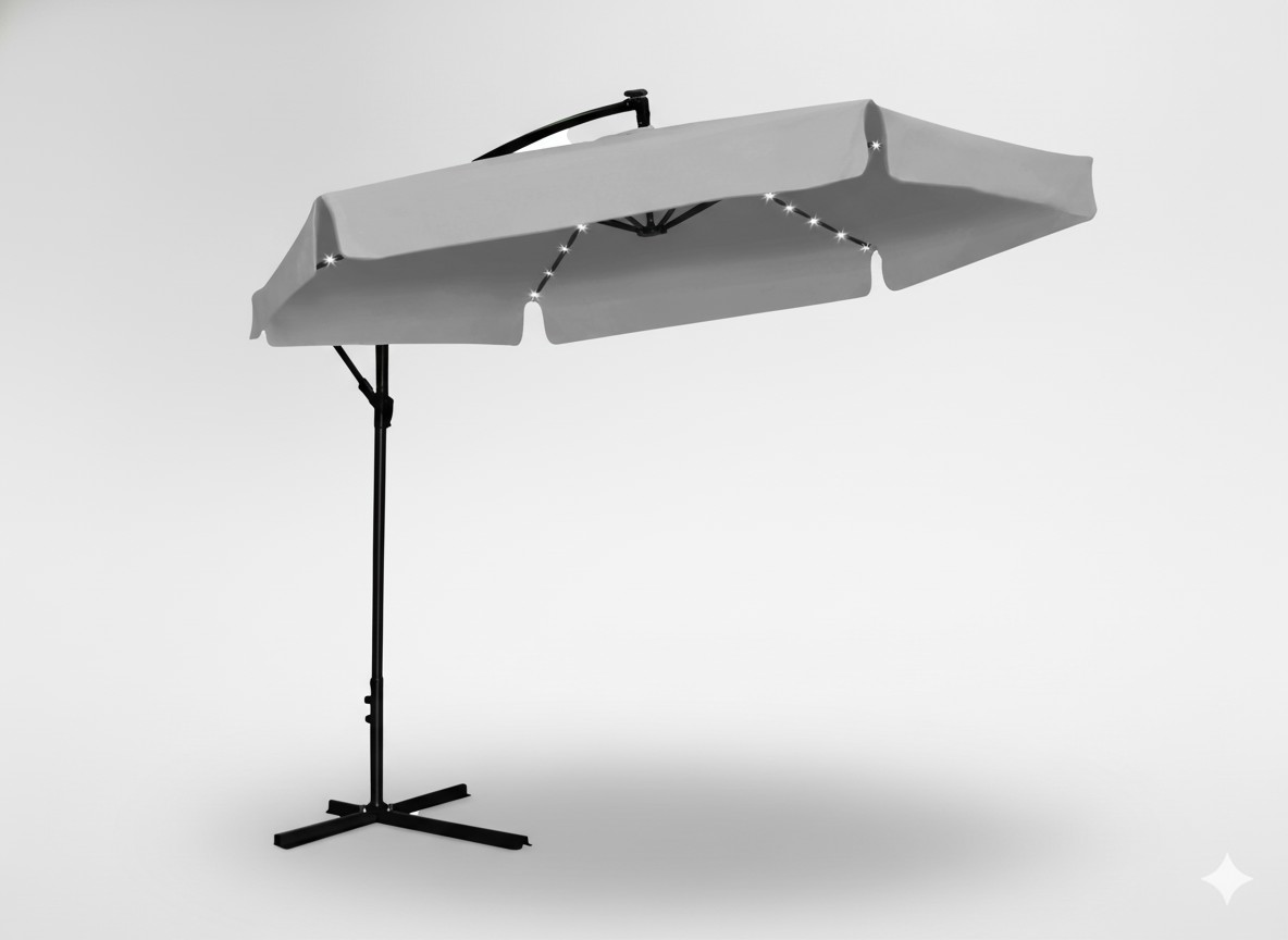 Мрієте про розслаблюючі вечори на свіжому повітрі в затишному саду? Наш садовий парасоль — ідеальне рішення, яке дозволить вам насолоджуватися красою природи, забезпечуючи необхідну тінь вдень та атмосферне освітлення вночі.