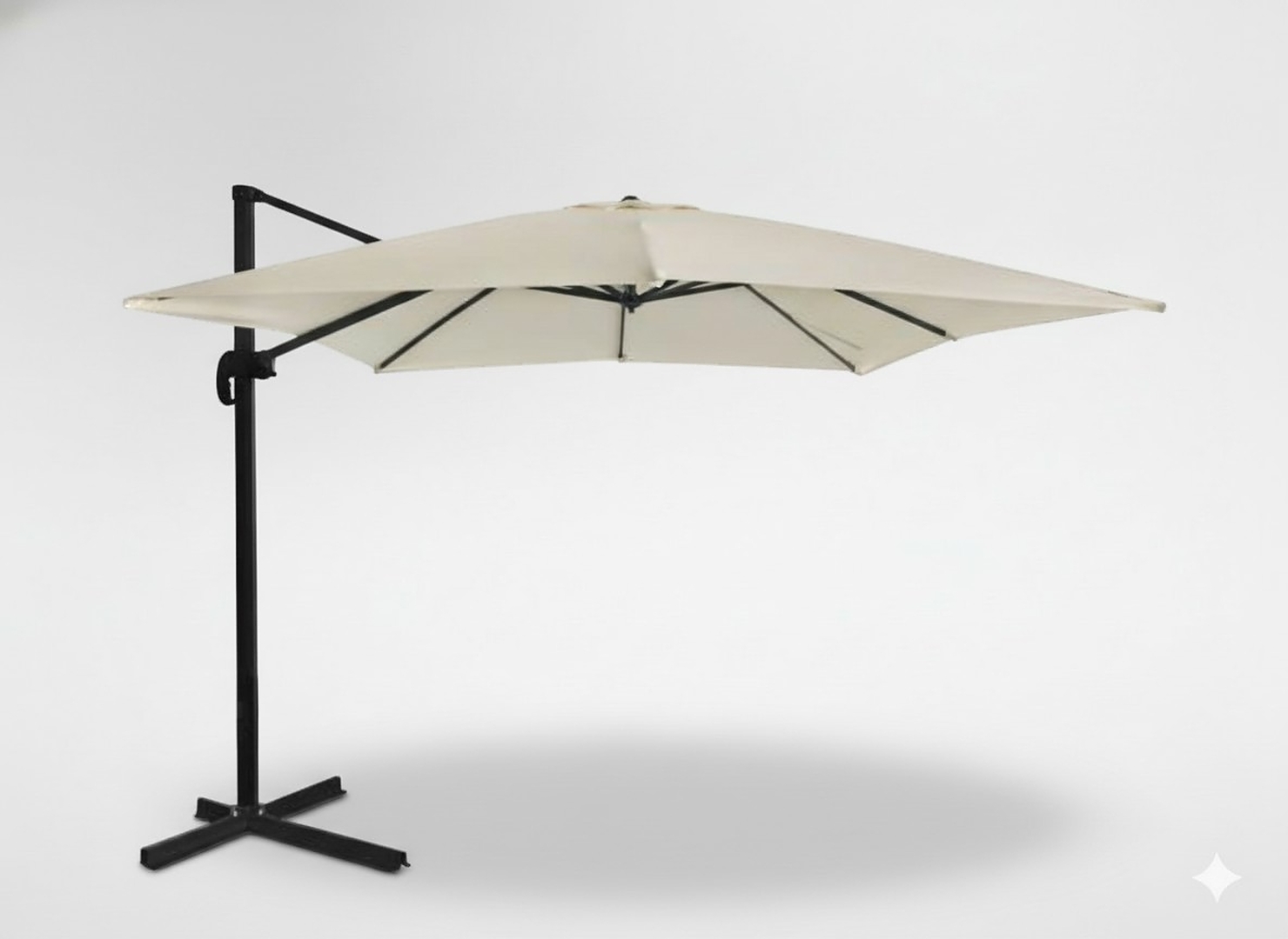 Парасоль виготовлений з високоякісних матеріалів. Він має водонепроникний матеріал, завдяки чому є на 100% стійким до атмосферних умов. Складання та розкладання є простим завдяки кривошипу. На відміну від конкурентів, наш парасоль має великий і міцний підставку, виготовлену з порошкового фарбованого сталі! Завдяки цьому він менш схильний до перекидання!