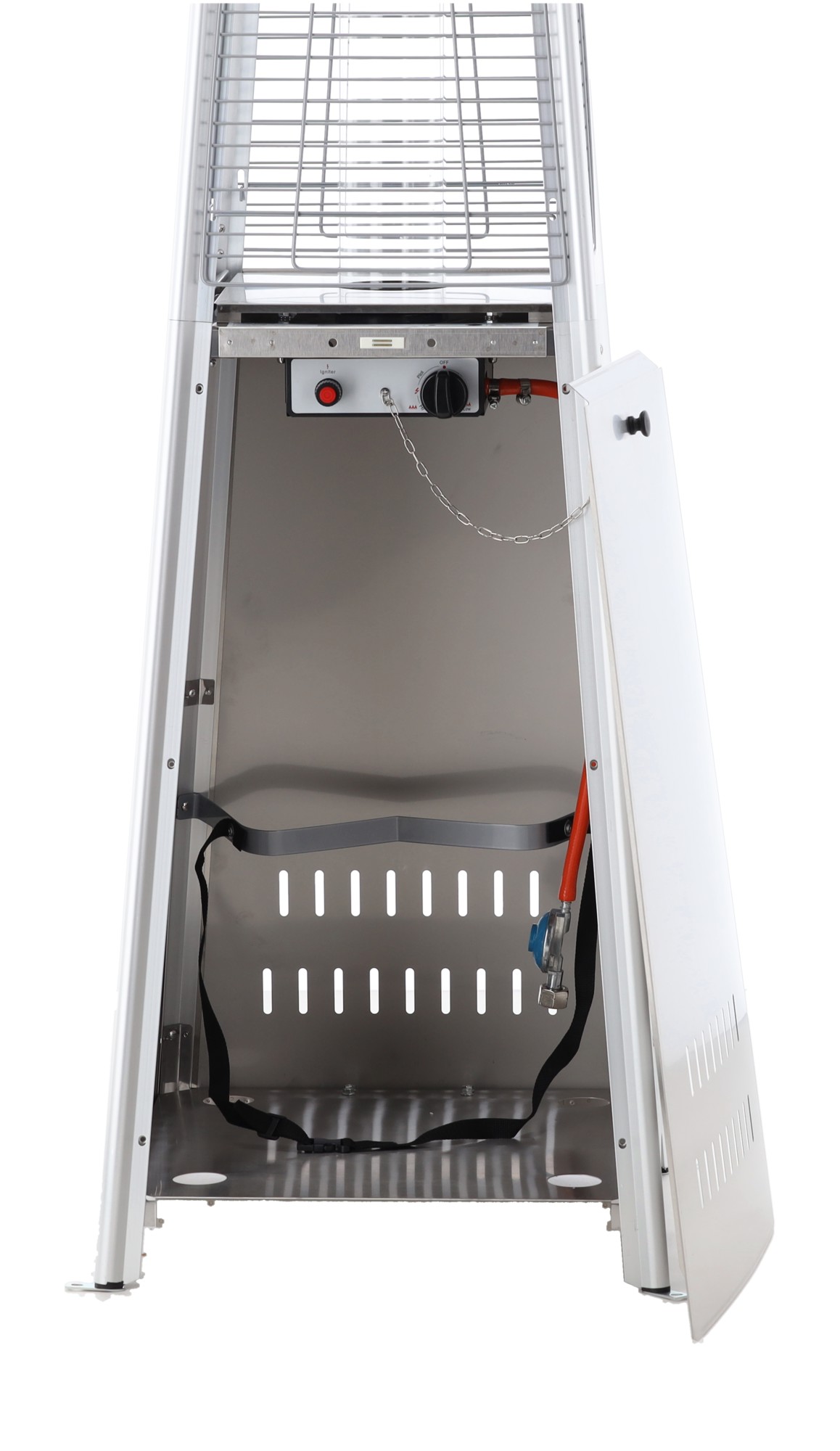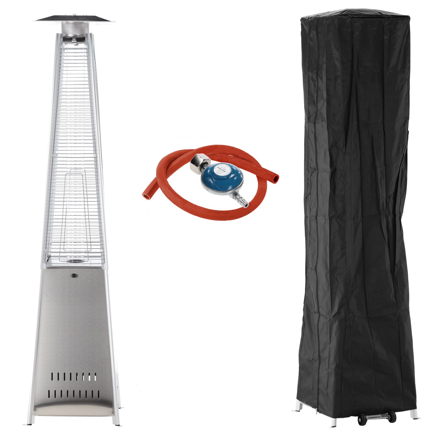 Оснащений скляною трубкою, що виставляє полум'я на показ, електричним запалюванням та системами безпеки, він гарантує зручність використання та неповторну атмосферу. До комплекту входить чохол, шланг та редуктор, завдяки чому парасолька готова до використання одразу після монтажу! ✅