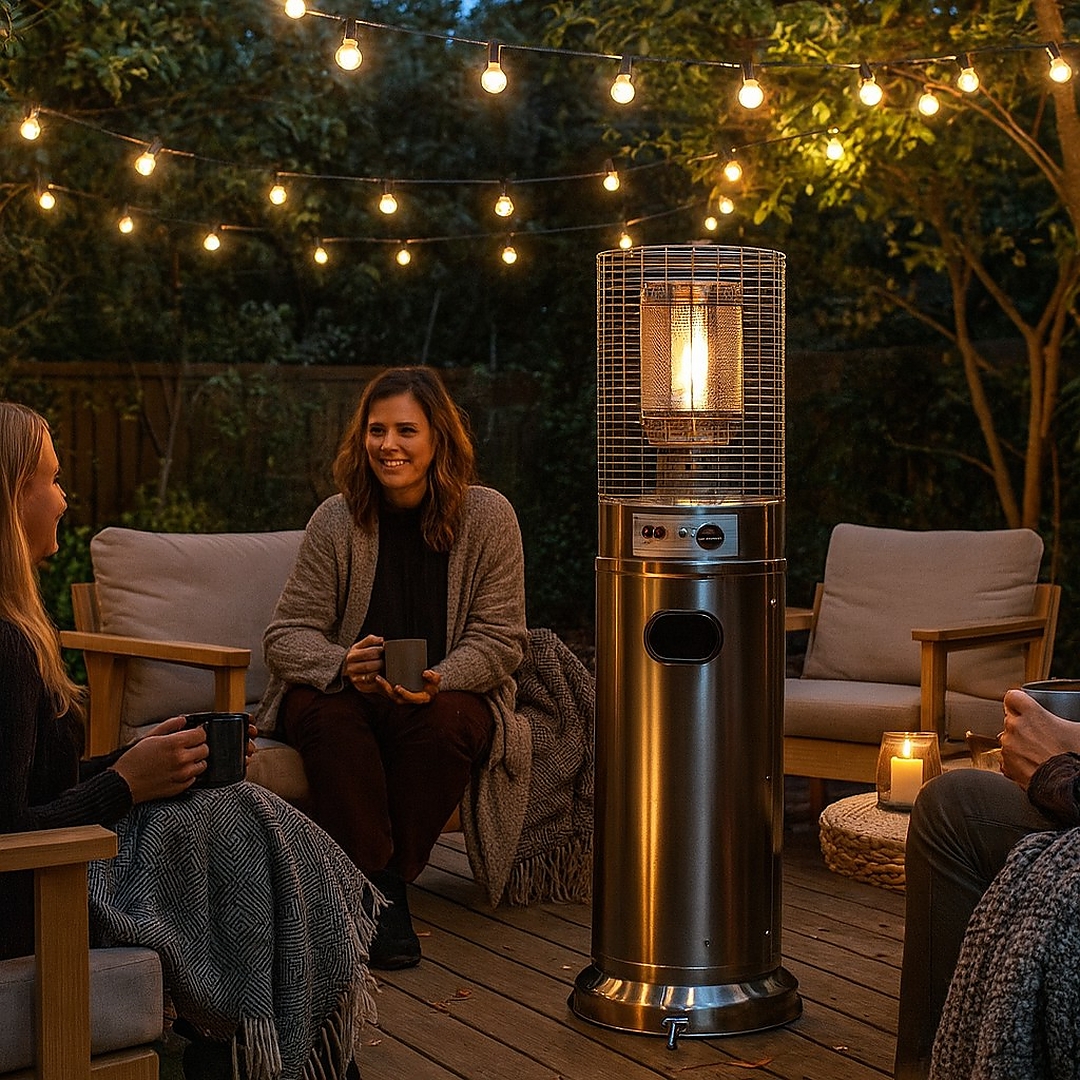 Невеликий розмір, велика потужність! Цей компактний газовий парасолька з нержавіючої сталі — ідеальне рішення для обігріву невеликих відкритих просторів — садів, терас і патіо. 🌿