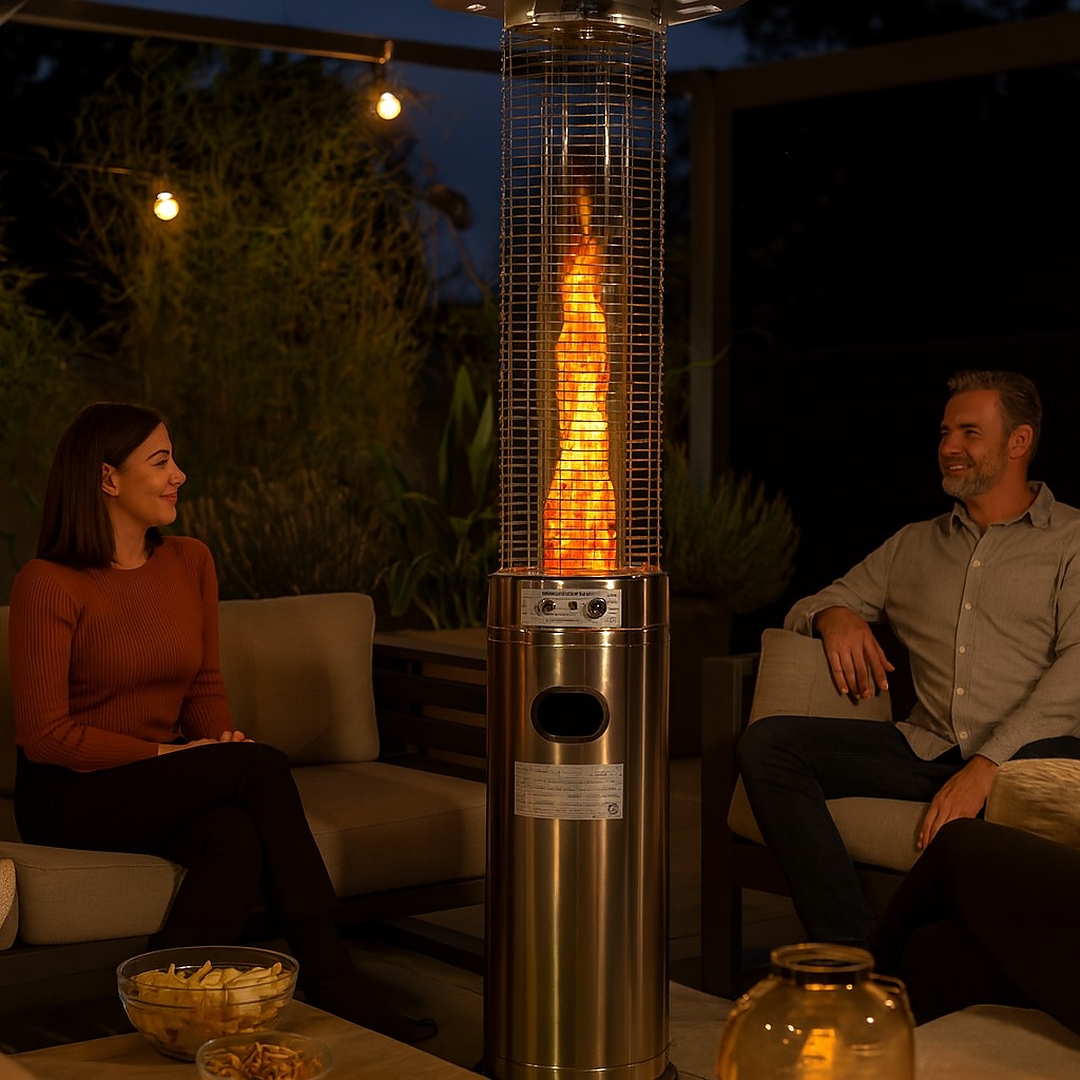 Затишне тепло та стильний вигляд – навіть у прохолодні дні! Цей круглий газовий парасоль, виготовлений з нержавіючої сталі, є надійним джерелом тепла для тераси, балкона чи саду. Він ідеально підійде для вечірніх зустрічей на свіжому повітрі. 🌙