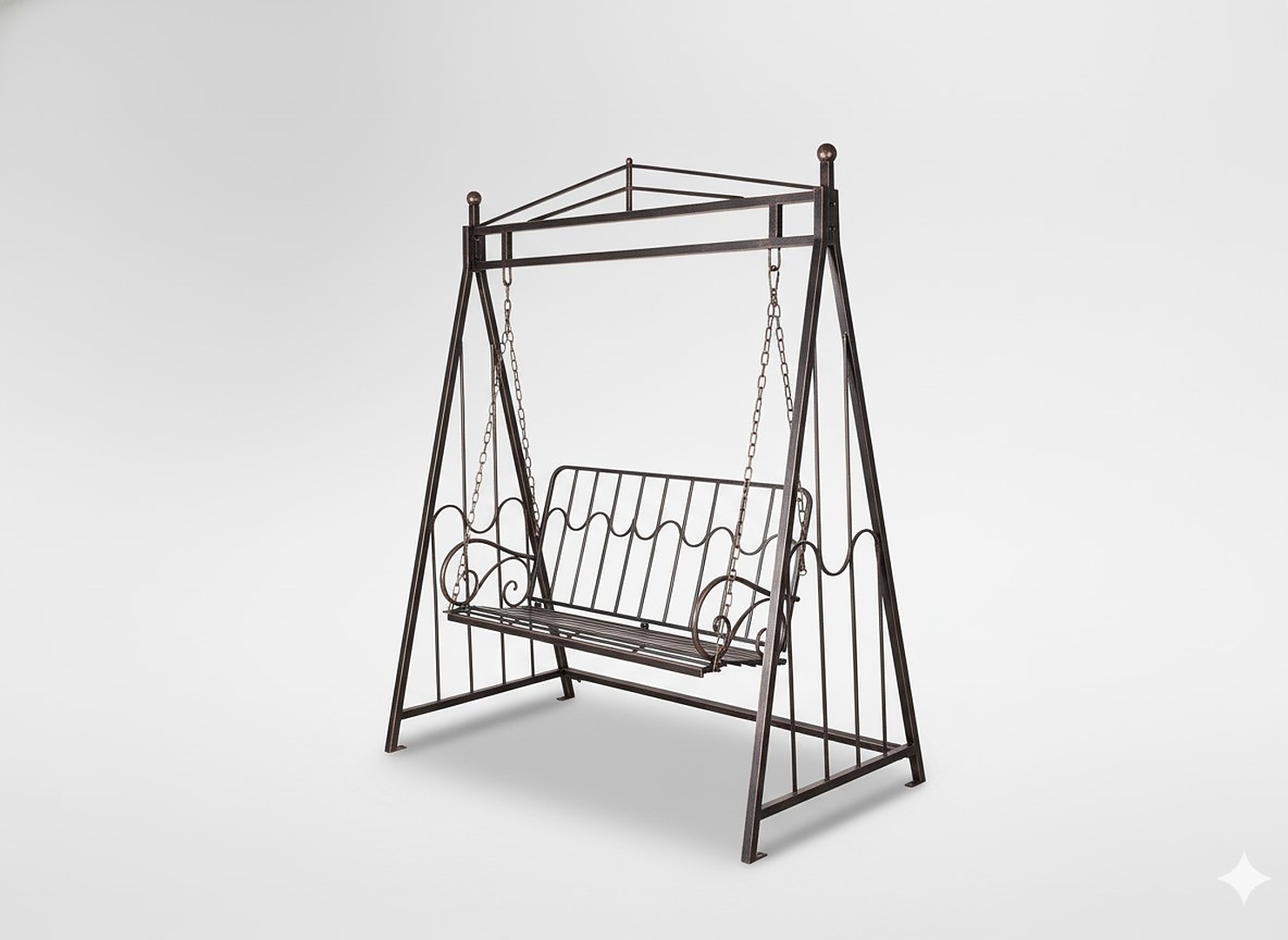 Завдяки класичному вигляду та металевим прикрасам вона ідеально поєднується з садовим оформленням у стилі рустикальному, класичному або вінтажному.
