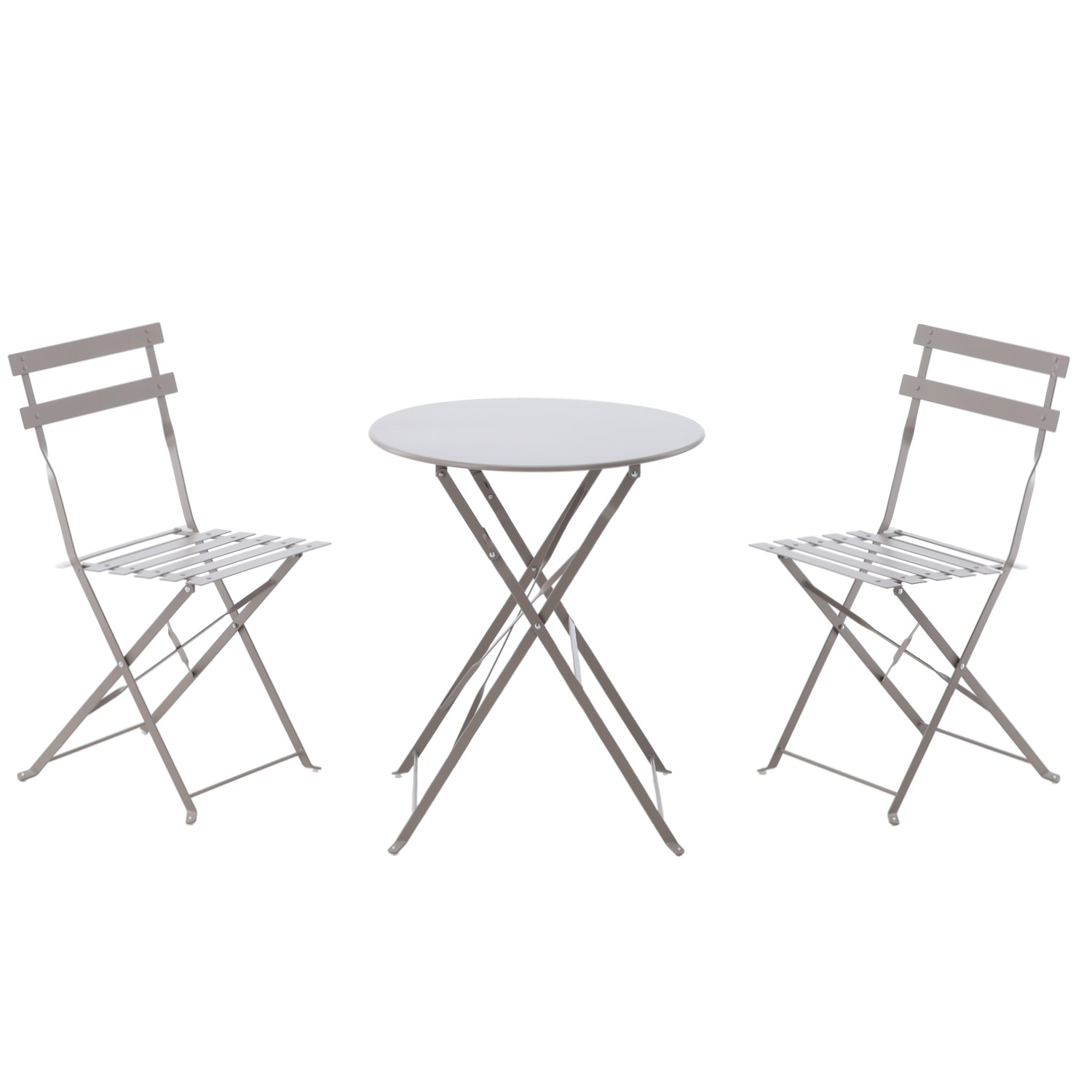 Додайте стилю та комфорту своєму саду, балкону або терасі за допомогою елегантного набору садових меблів сірого кольору! Цей функціональний комплект складається з круглого столу та двох складаних стільців, виготовлених з високоякісної оцинкованої та порошково пофарбованої сталі, що забезпечує довговічність та стійкість до атмосферних умов.