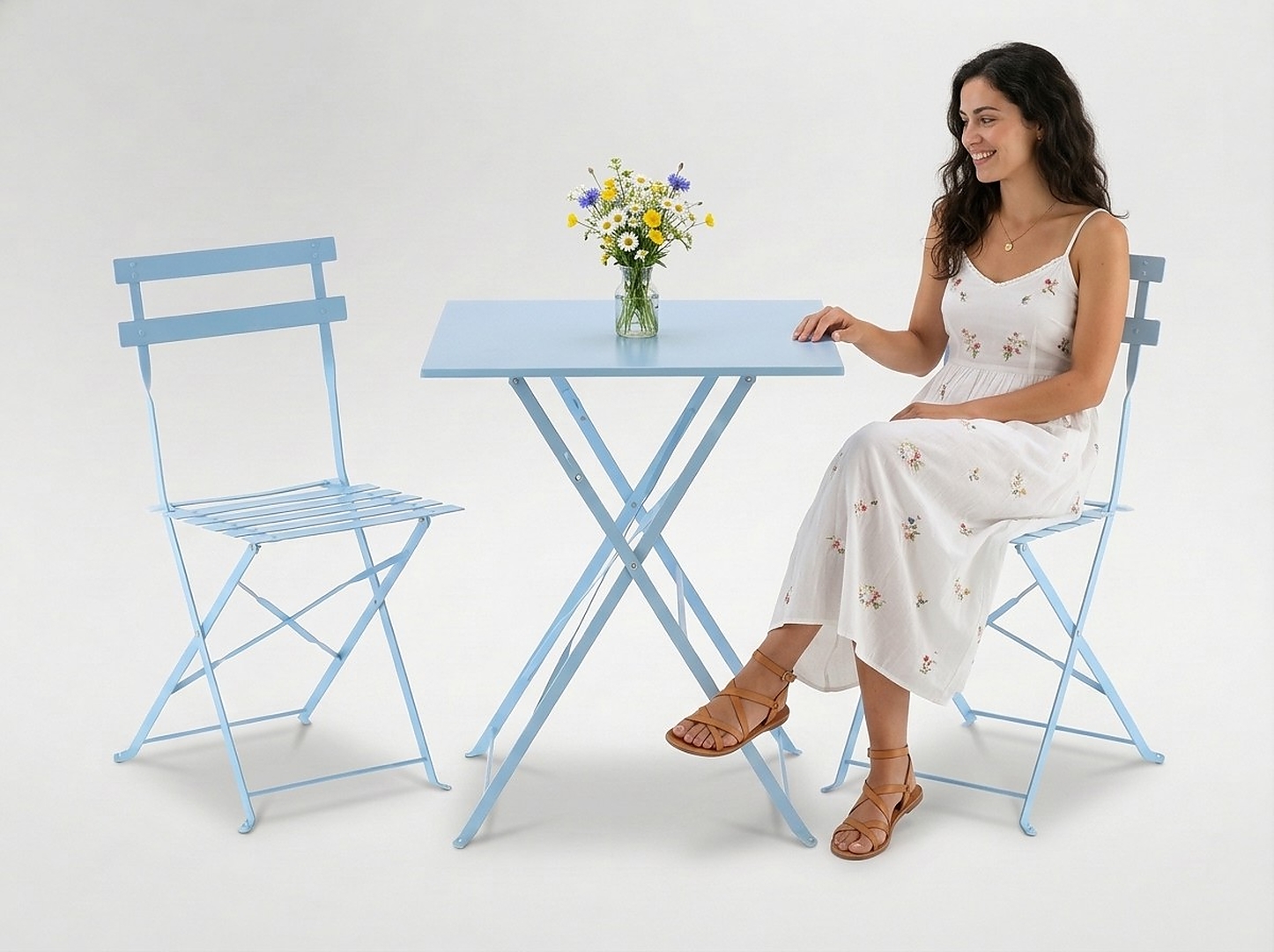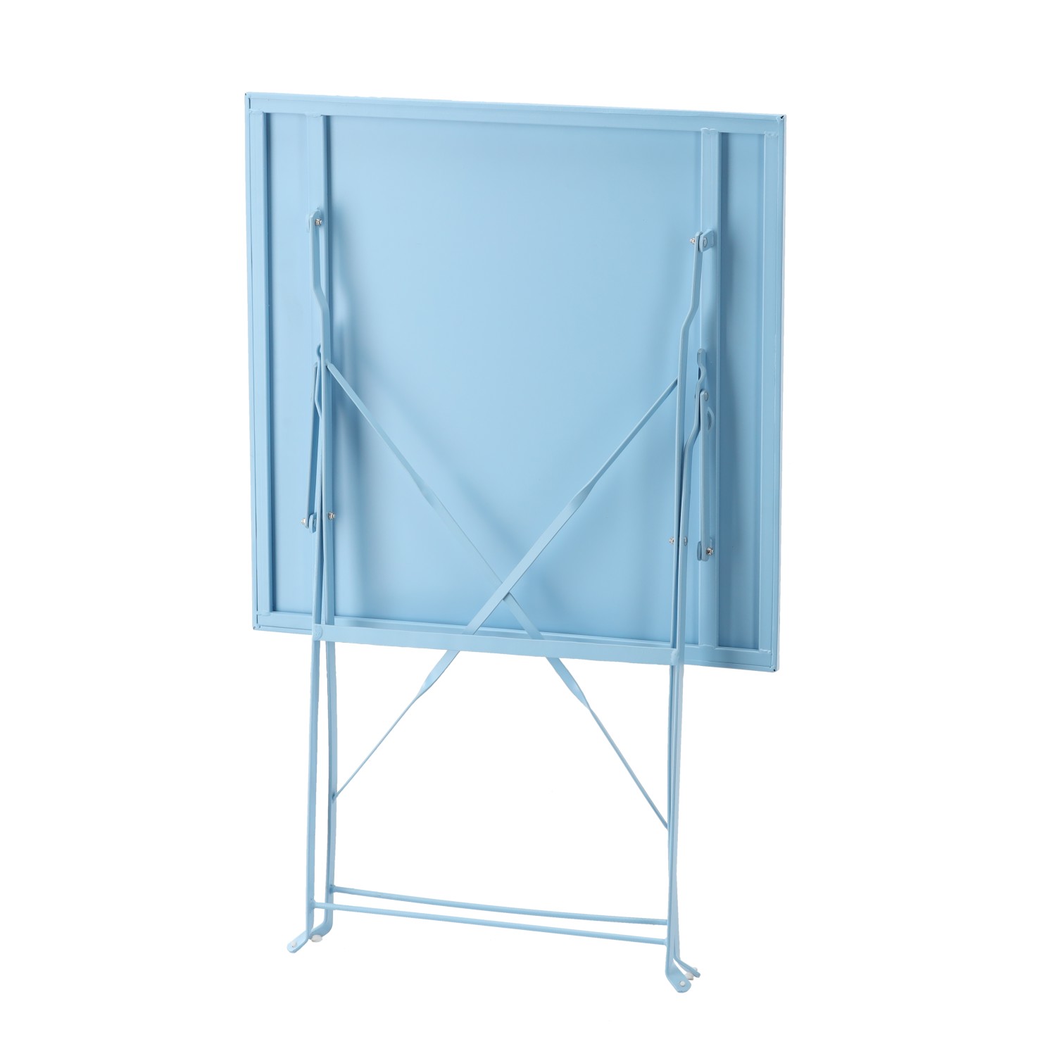 Додайте стилю та комфорту своєму саду, балкону або терасі за допомогою елегантного набору садових меблів синього кольору! Цей функціональний комплект складається з квадратного столу та двох складних стільців, виготовлених з високоякісної оцинкованої та порошково пофарбованої сталі, що забезпечує довговічність та стійкість до атмосферних умов.