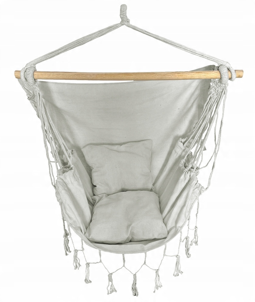 Підвісне крісло - це особливий вид крісла, яке працює за принципом гамака. Воно має зручне, м'яке сидіння та спинку, виготовлені з натуральної бавовни з невеликим додаванням синтетичних волокон. Завдяки цьому воно не тільки приємне на дотик, але й міцне.