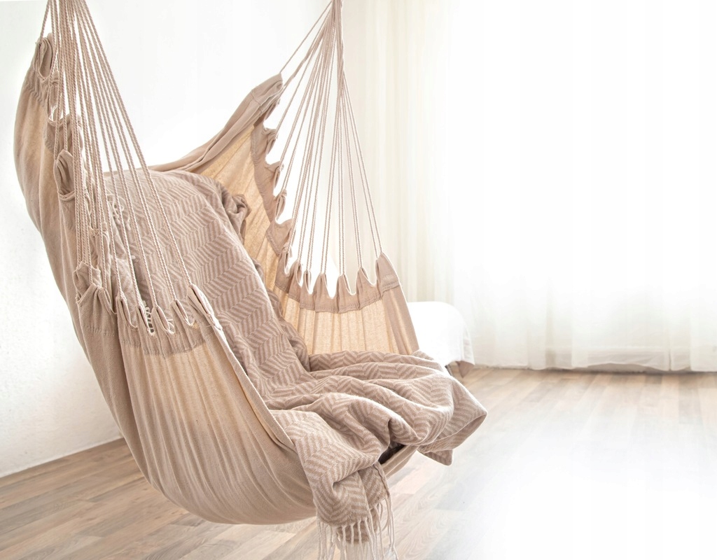 Підвісне крісло — це особливий вид крісла, яке працює за принципом гамака. Воно має зручне, м'яке сидіння та спинку, виготовлені з натуральної бавовни з невеликим додаванням синтетичних волокон. Завдяки цьому воно не тільки приємним на дотик, але й міцним.